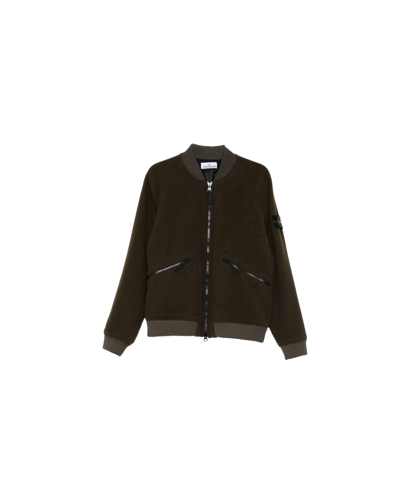 dark green zip fastening ribbed hem ribbed cuffs side zip pockets logo patch