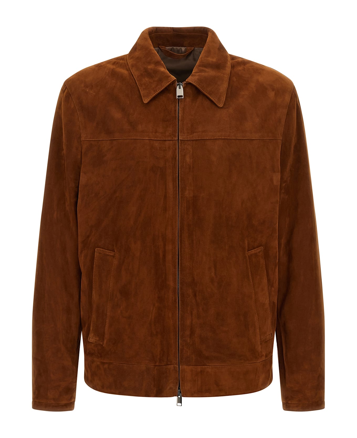 Suede blouson, cupro twill lining, shirt collar with embossed logo in the underneck, front zip closure, pockets, long sleeves. Composition: 100% leather