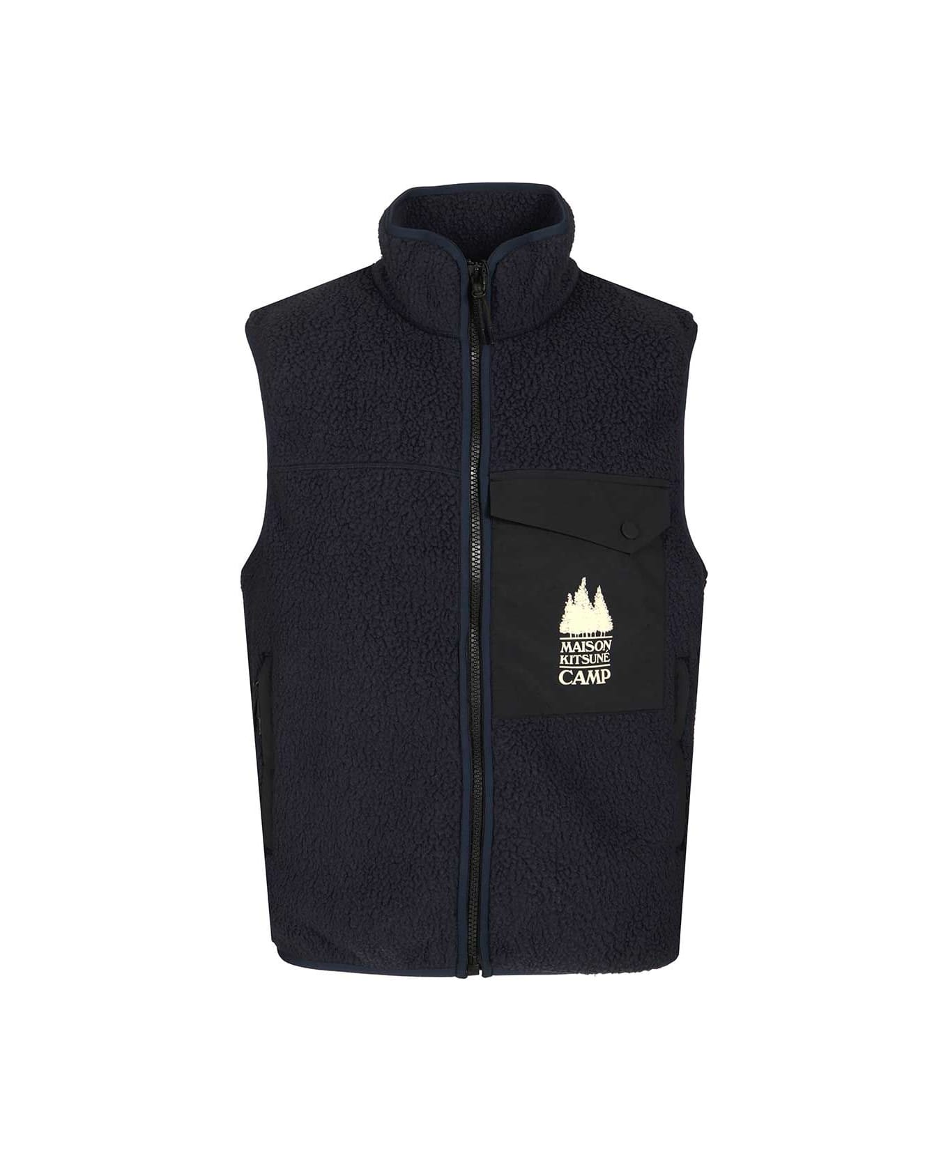 Fleece vest by Maison Kitsunè, with nylon chest pocket, two side zip pockets, zip fastening on the front, Maison Kitsuné Camp signature printed on the chest pocket