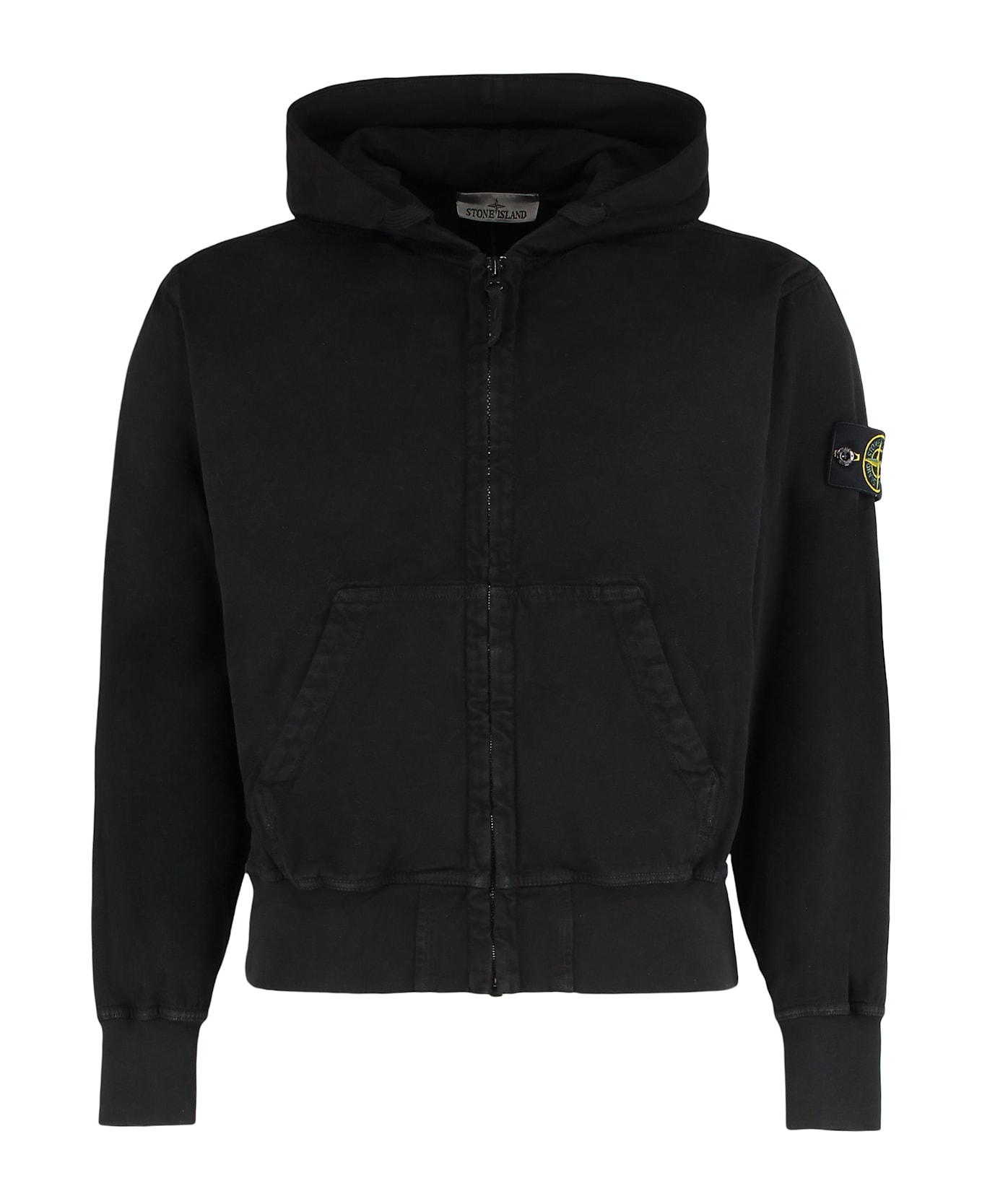 Hooded sweatshirt with zipper in organic cotton panama, ribbed cotton inserts and pockets. garment-dyed model with old effect, for a slightly worn look. suitable for both everyday use and outdoor activities.