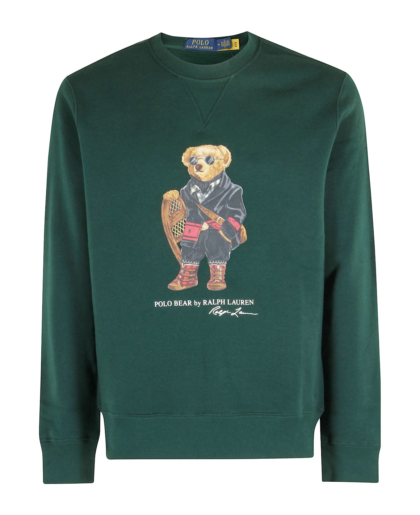 Sweatshirt -Polo Ralph Lauren -Green color -Bear print on front -Circle neck -Long sleeve