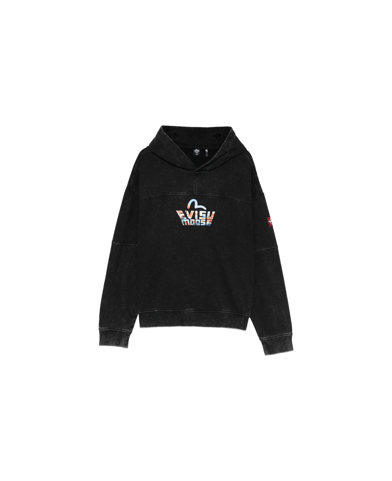 black graphic print hood long sleeves ribbed hem ribbed cuffs