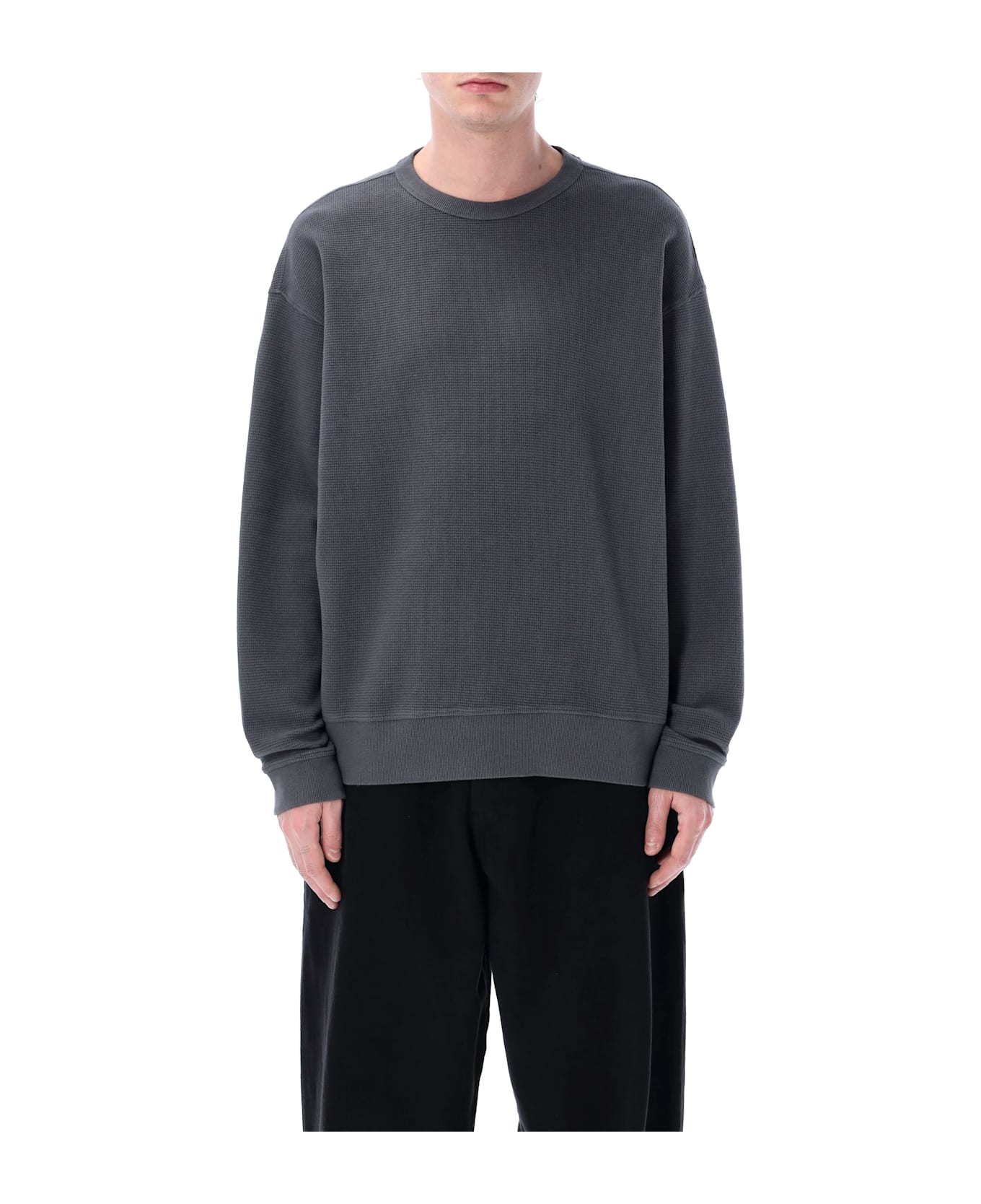 Versatile Top By Ymc. Featuring: Brushed Organic Cotton Waffle Textured Jersey Garment Washed Crewneck Long Sleeves Rib Knit Neck, Cuffs And Waistband Relaxed Fit Model Il 1,90 M And Wears Size L