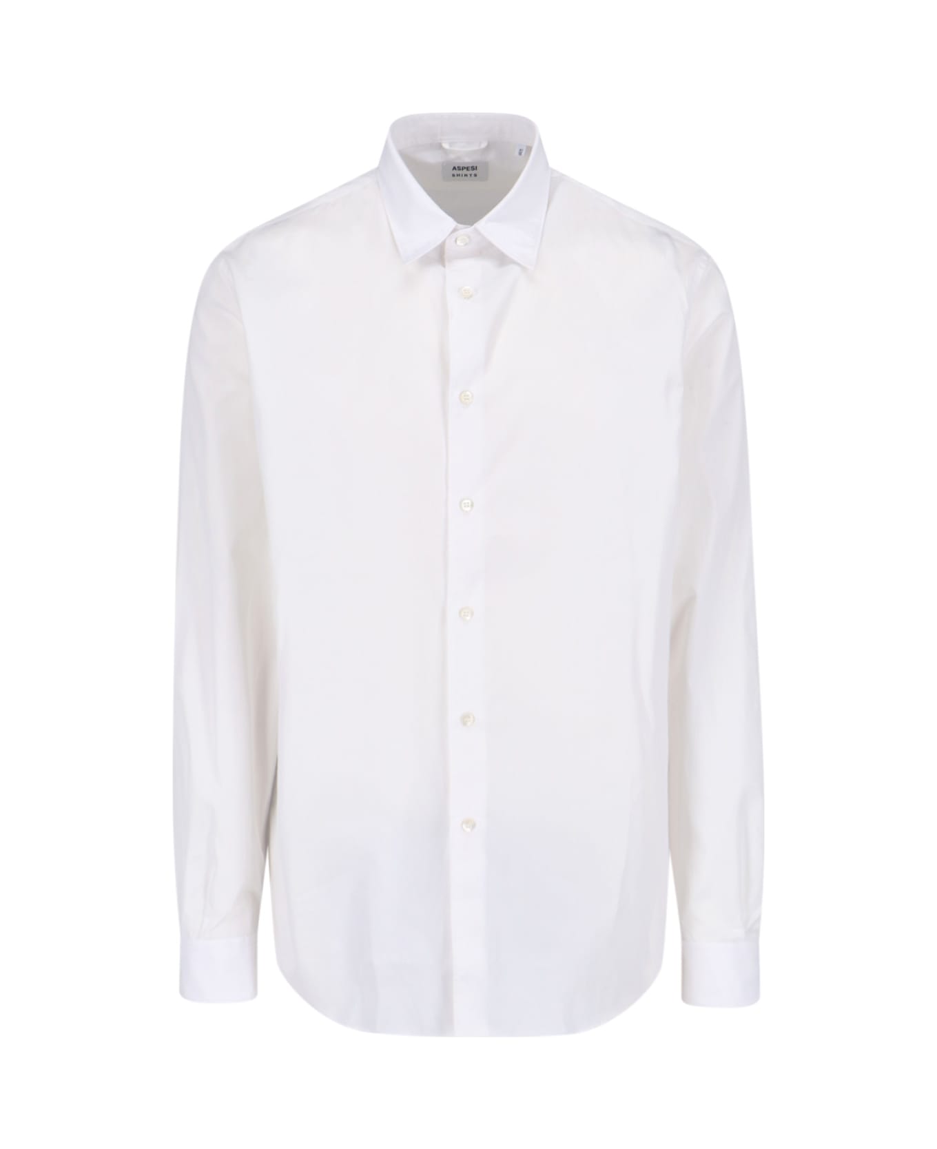 Aspesi 'Comma' white cotton shirt with classic collar, button closure, button cuffs, curved hem.