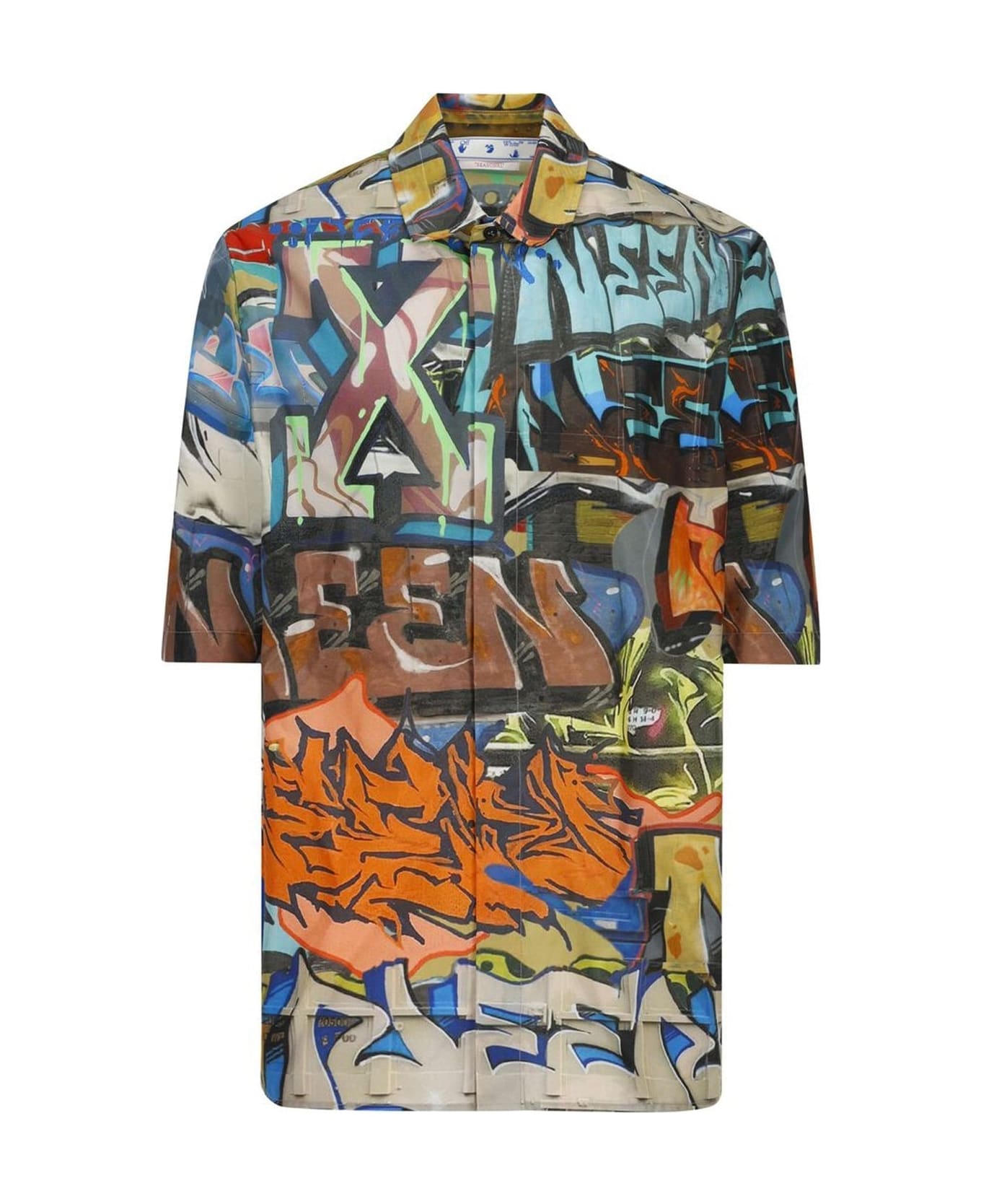 Composition: 100% Polyamide Front button closure Short sleeve Shirt collar Graffitiinspired print Made in Italy