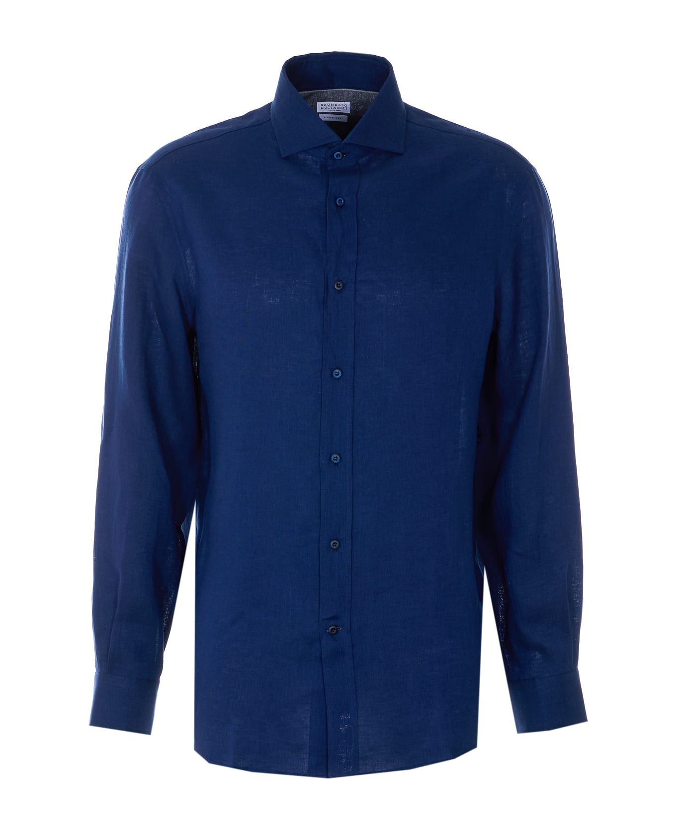 Brunello Cucinelli blue shirt with frontal buttons closure, regular collar, long sleeves, button on cuffs Composition: 100% Linen