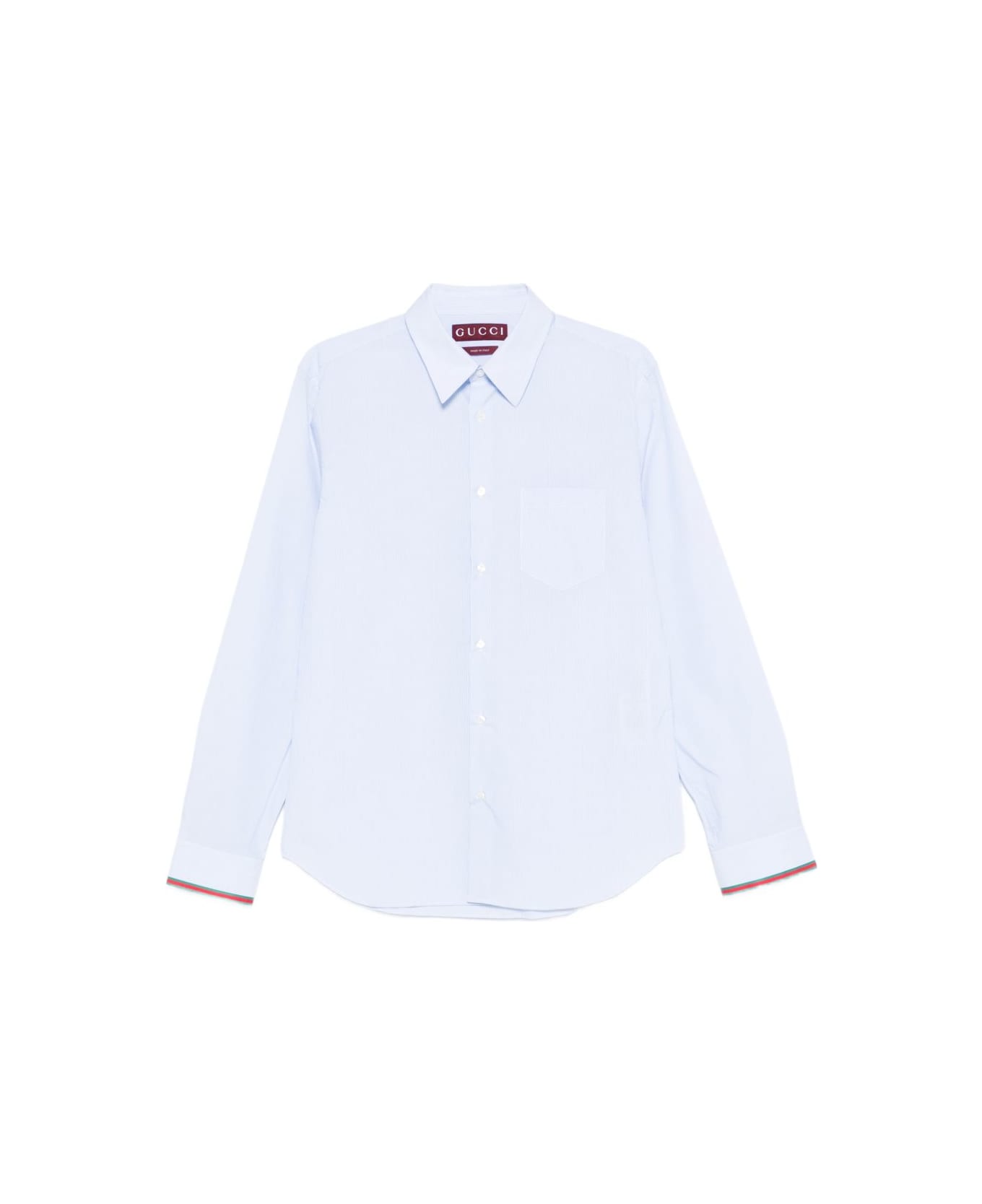 light blue chest pocket button fastening long sleeves buttoned cuffs striped-trim cuffs Composition: 100% Cotton