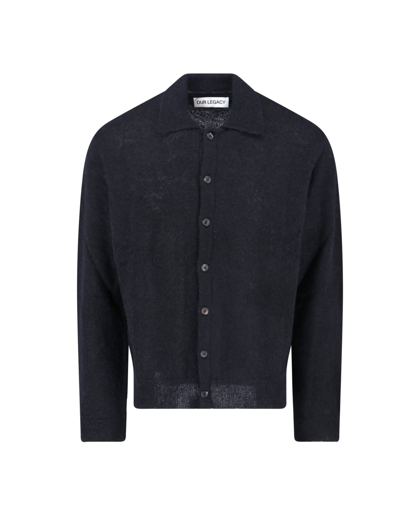 Our Legacy 'Evening polo' cardigan in black alpaca blend with classic collar, button closure, ribbed trim, straight hem.