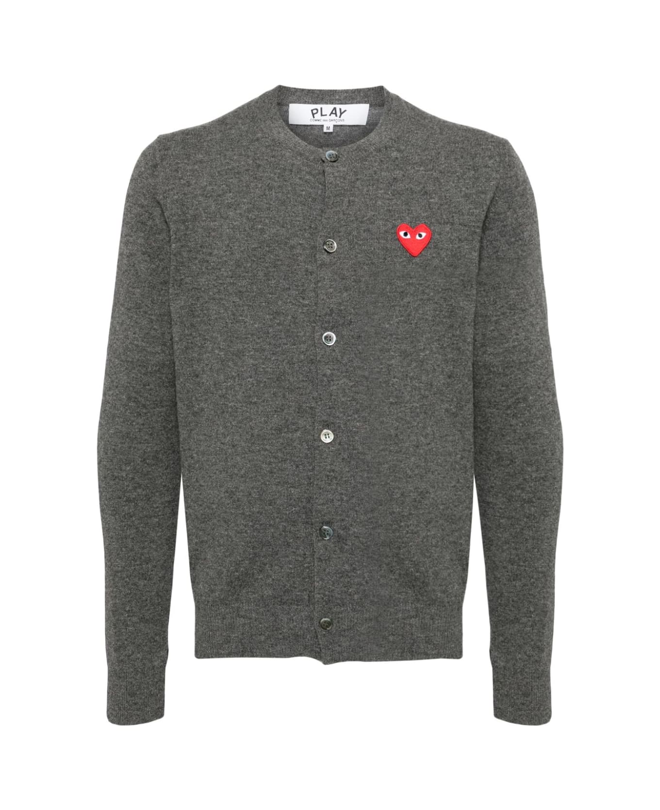 medium grey ribbed crew neck front button placket long sleeves ribbed trims heart logo emblem
