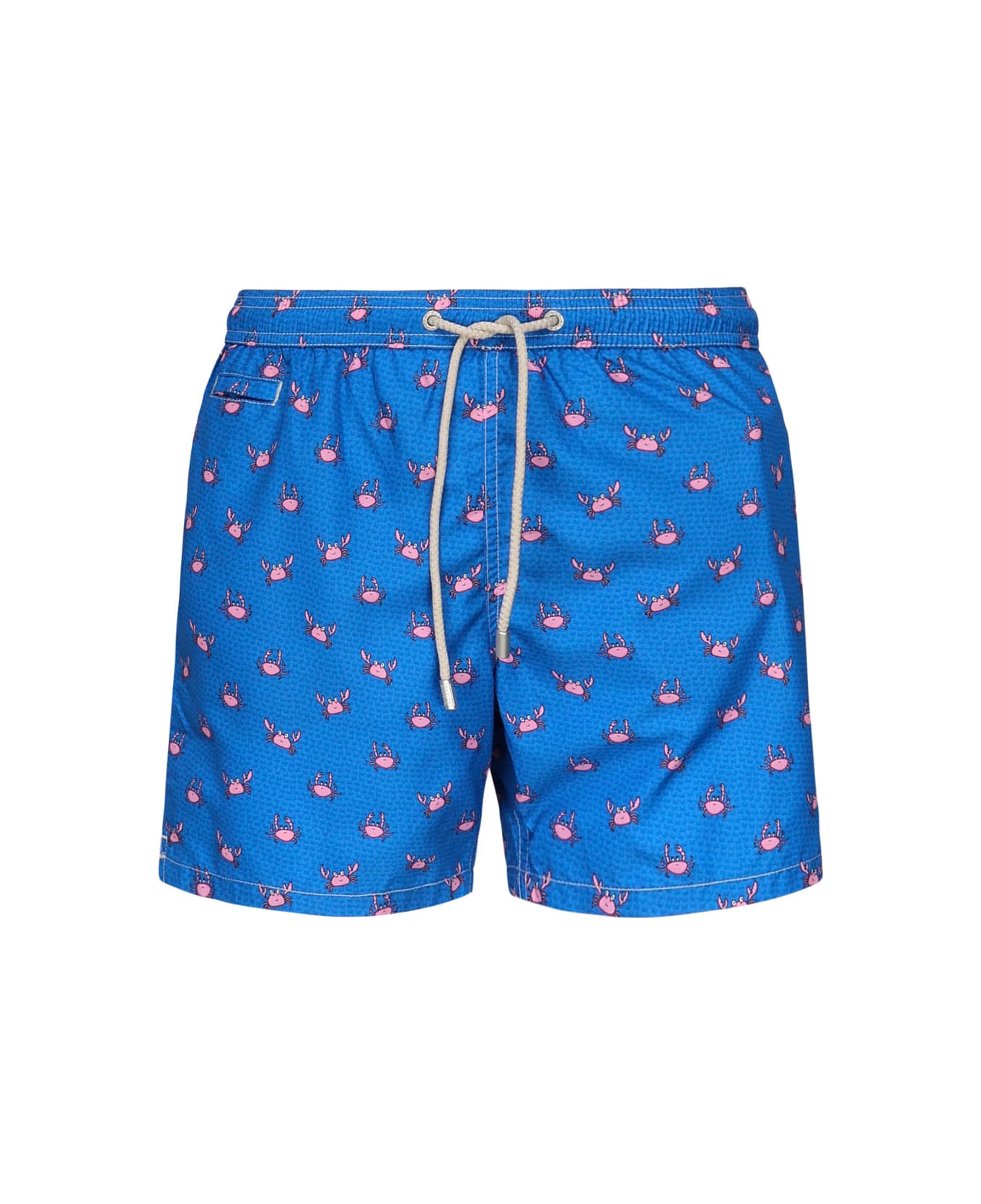 -Adjustable drawstring -Mesh lining -All-over print -Side pockets with French seams -Back pocket with button closure -Size shown in the photo is S -Color: Blue, Pink