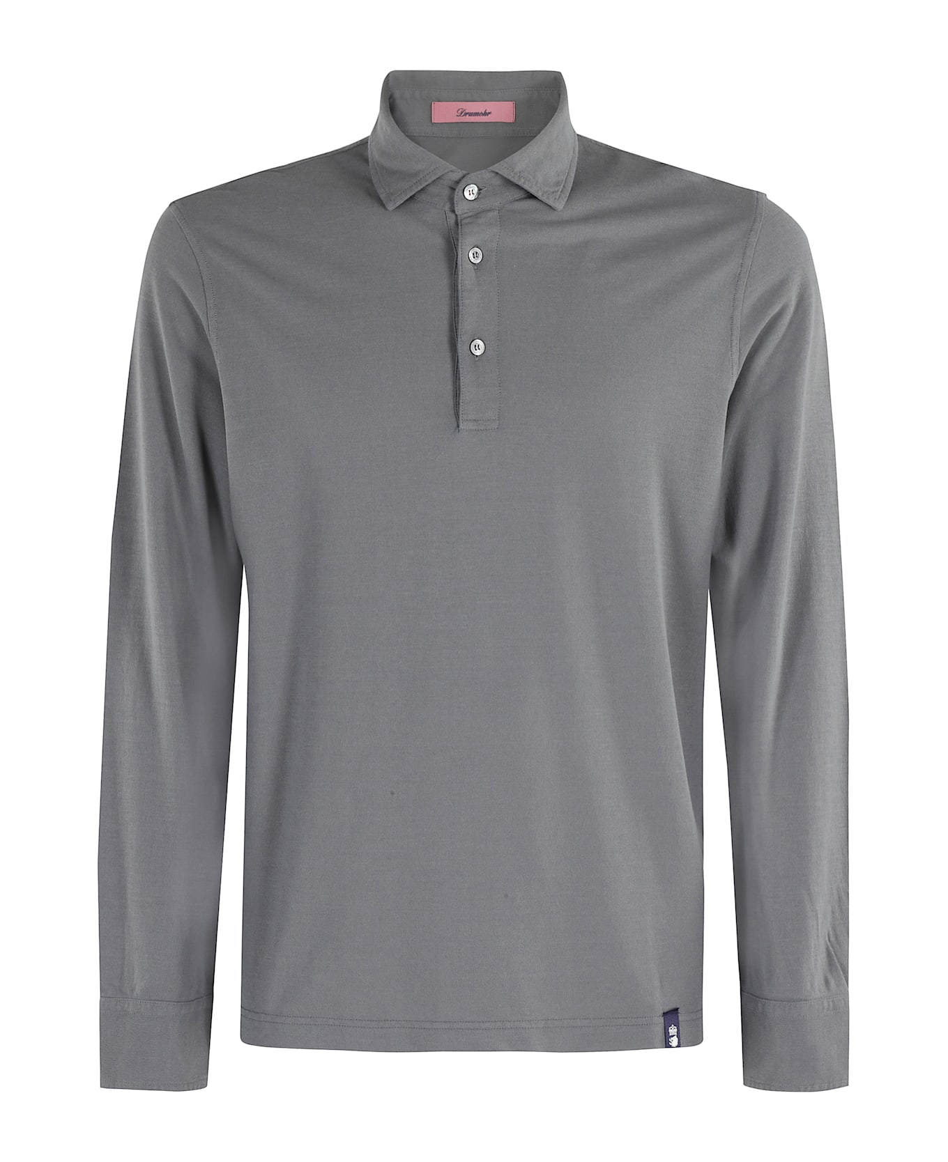 ML Ice polo shirt - Drumohr - Smoke color - Ice Cotton fabric - Polo collar with buttons - Long sleeve - Regular fit
