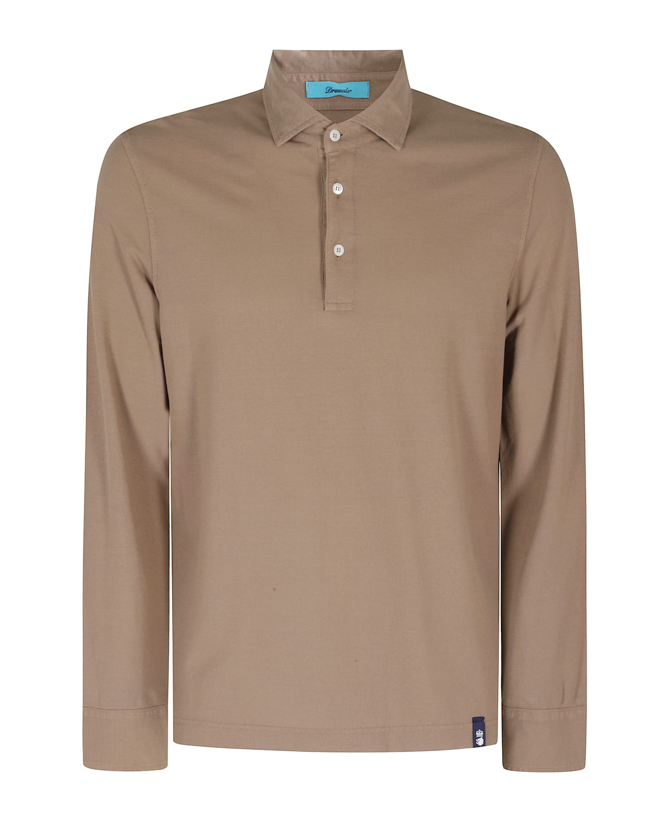 Ice ML Polo - Drumohr - Dark sand color - Ice Cotton fabric - Polo collar with buttons - Long sleeve - Regular fit
