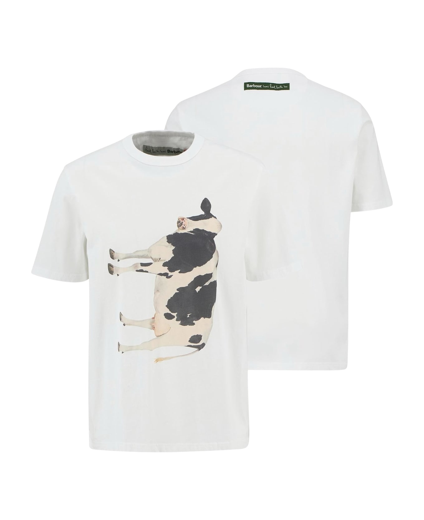 Barbour X Paul Smith white cotton T-shirt, short sleeves, front print, logo label on the back.