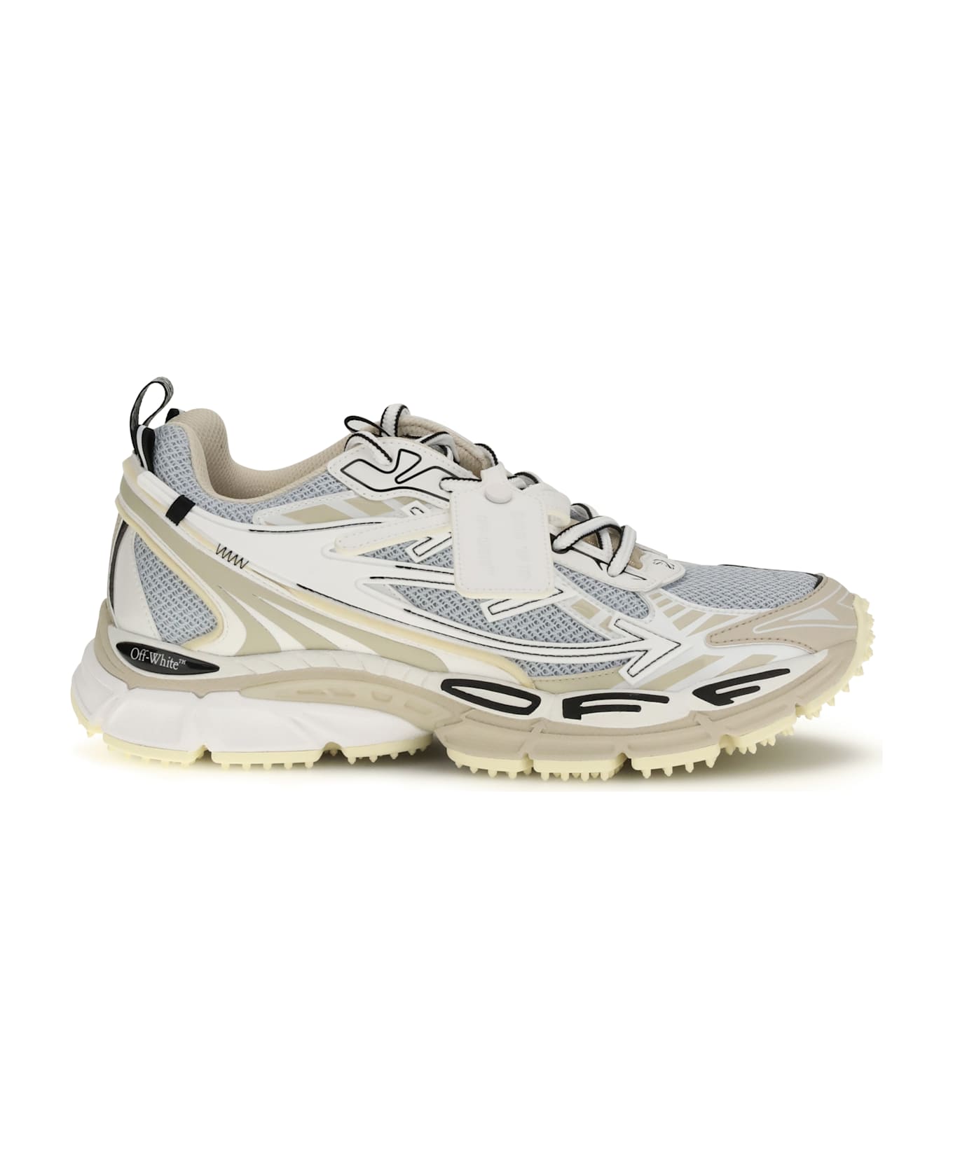 The be right back sneakers by off white are the embodiment of urban, modern style. featuring a round toe and lace-up closure, these sneakers feature the distinctive arrow motifs on the sides, an iconic touch from the brand. the logo on the tongue and the table on the heel add additional signature details. the treaded rubber sole and lightweight cushioned insole provide comfort and performance, while the combination of mesh and synthetic leather on the upper ensures a sporty, innovative look.