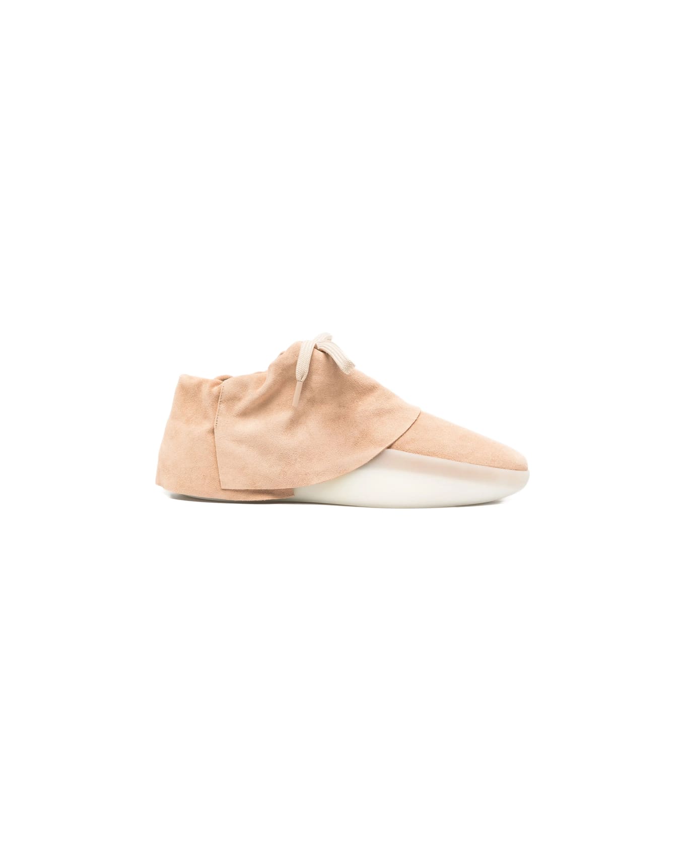 beige suede lace-up detail round toe flat sole rubber sole