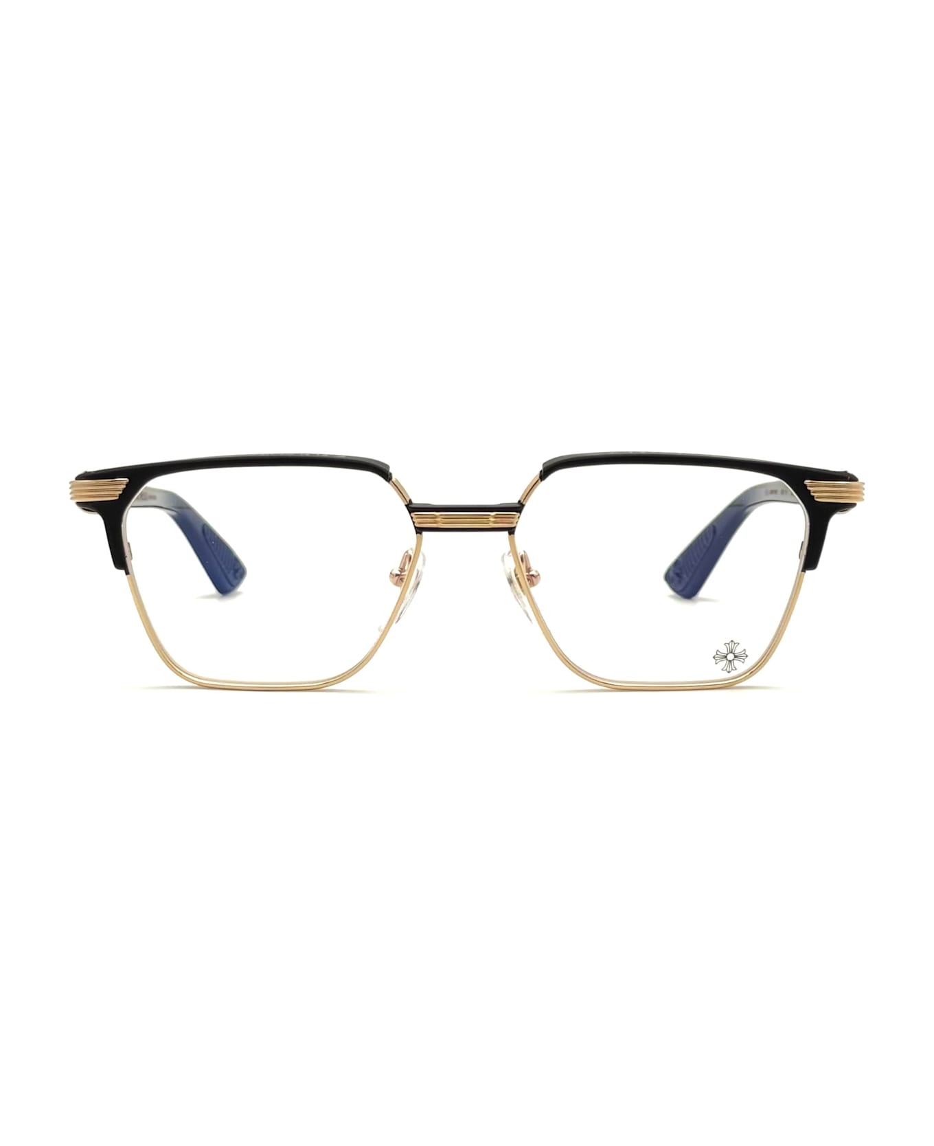 Brand: Chrome Hearts Model: Blazin - Matte Black / Matte Gold Rx SKU: 323203385875E56464 Type: Optical Color: Black, Gold Material: Titanium Lens color: Clear Size: 57mm-17mm-151mm Made in Japan