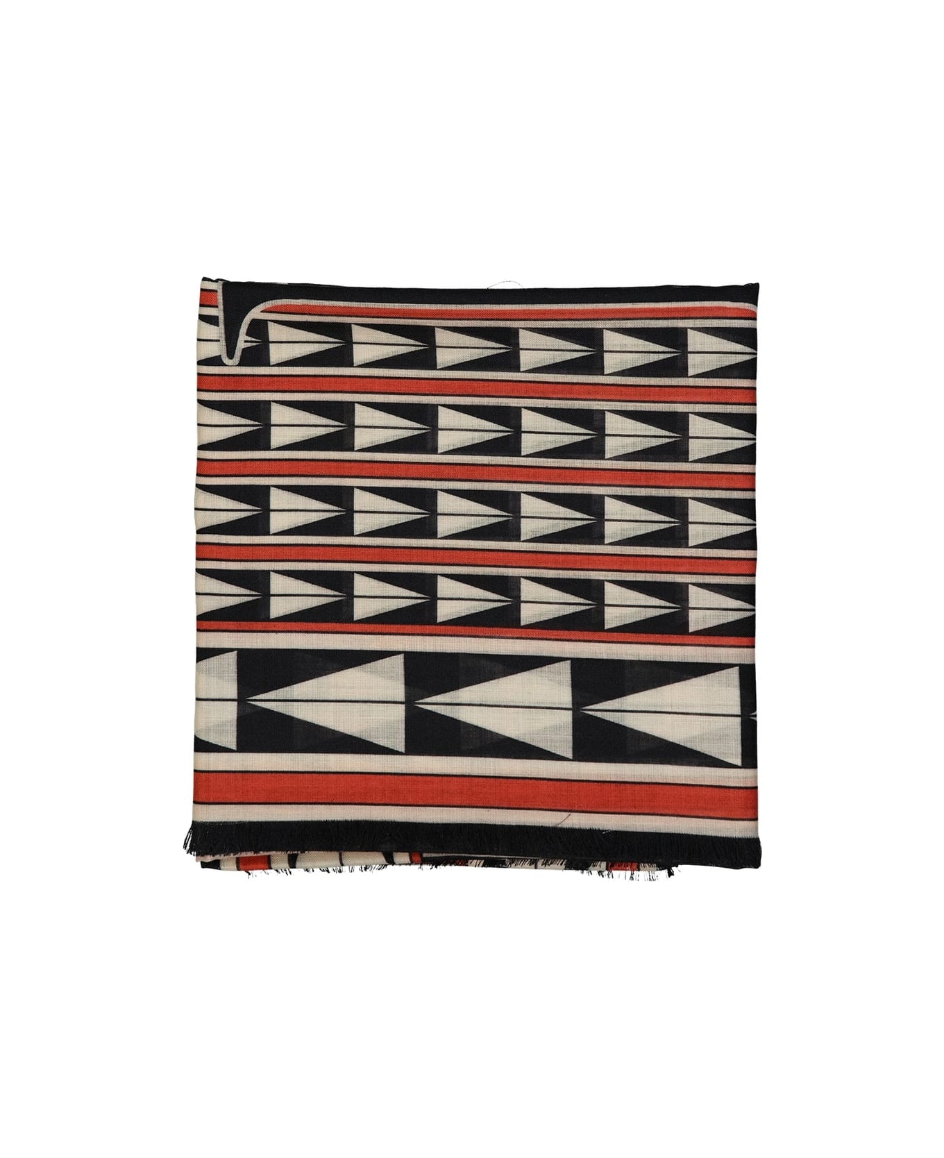 Composition: 100% Wool Fringe finish Hand wash Contrast logo detail Geometrical pattern Length 200 cm Height 70 cm Made in Italy