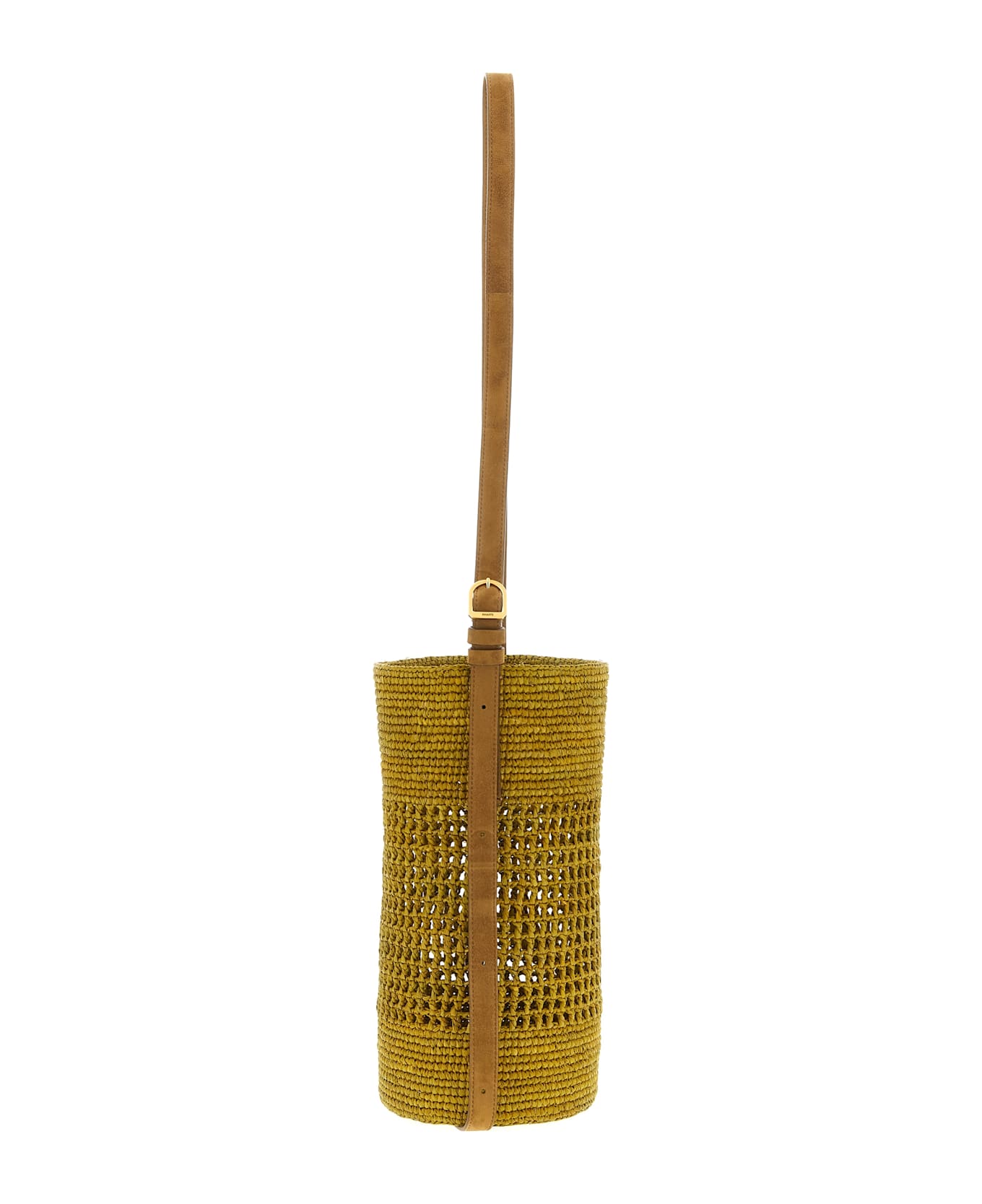 Small 'Billie' bucket bag in finely woven natural raffia, cylindrical silhouette, adjustable calf leather shoulder strap. Handcrafted product, any imperfections are to be considered characteristics of uniqueness. Composition: 70% palm fiber 30% calfskin