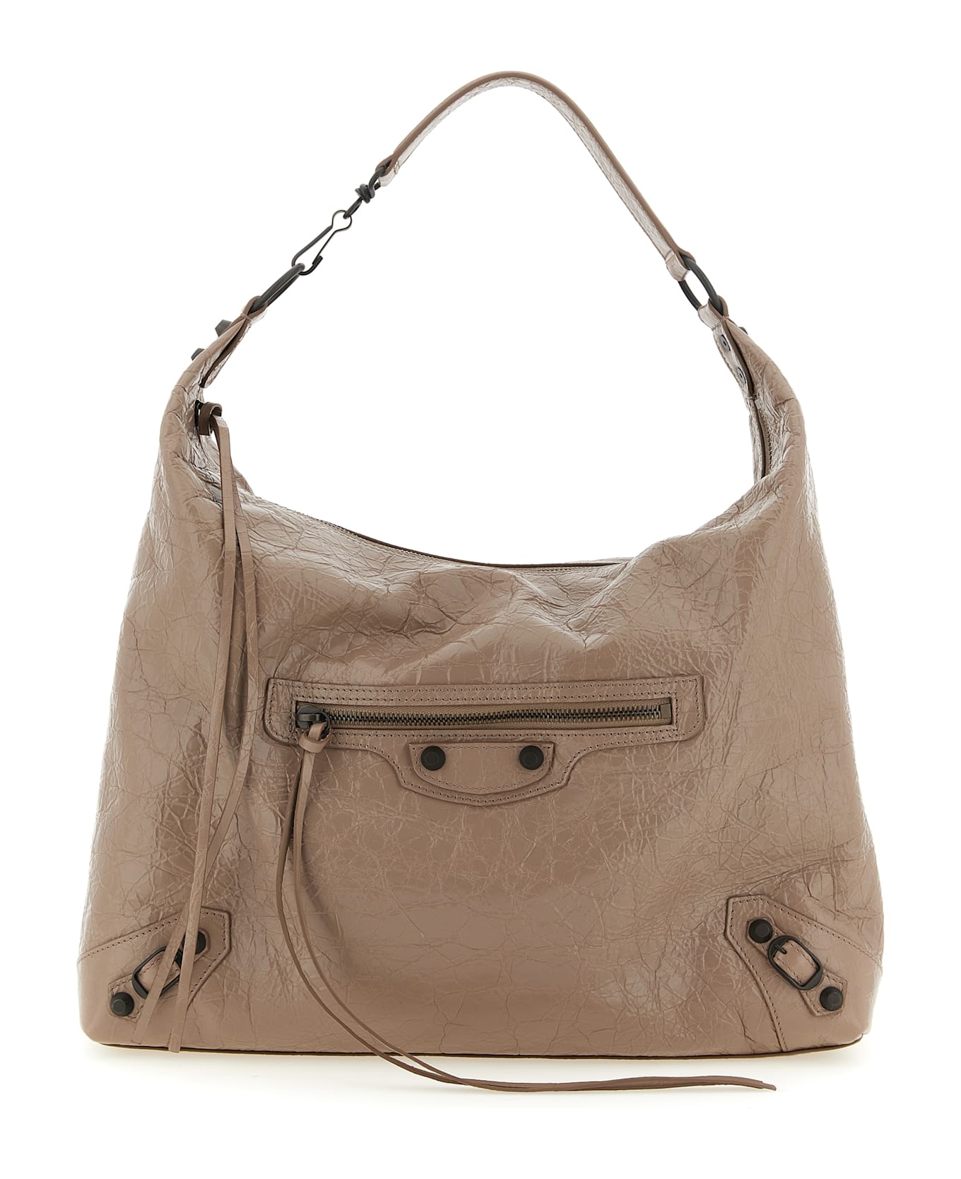 Arena 'Le City' medium shoulder bag in Arena lambskin leather with brass metal finish, Hobo model, top zip closure, handle, front zip pocket, removable shoulder strap, cotton canvas lining. Composition: 100% lamb leather (Ovis aries)