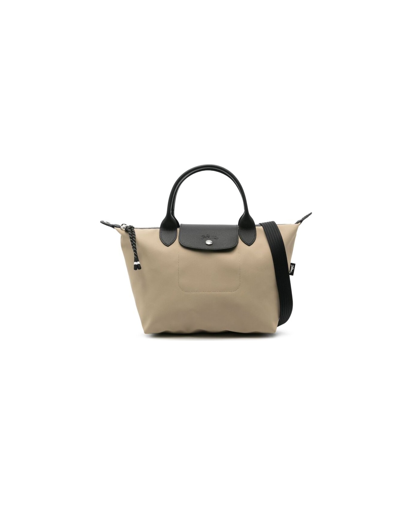beige/black ECONYL® two top handles adjustable detachable shoulder strap main compartment multiple internal slip pockets silver-tone hardware front flap closure with logo debossed press-stud fastening