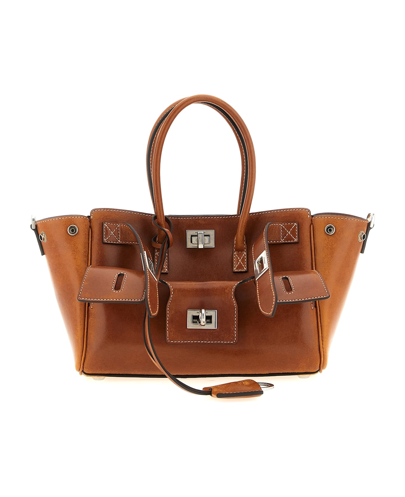 'Bel Air' mini handbag in vegetable tanned lambskin leather, Carry All model, swivel closure, back embossed logo, double fixed tubular handle, rigid base with metal feet, double lamb nappa lining, removable keyring, adjustable and removable shoulder strap.
