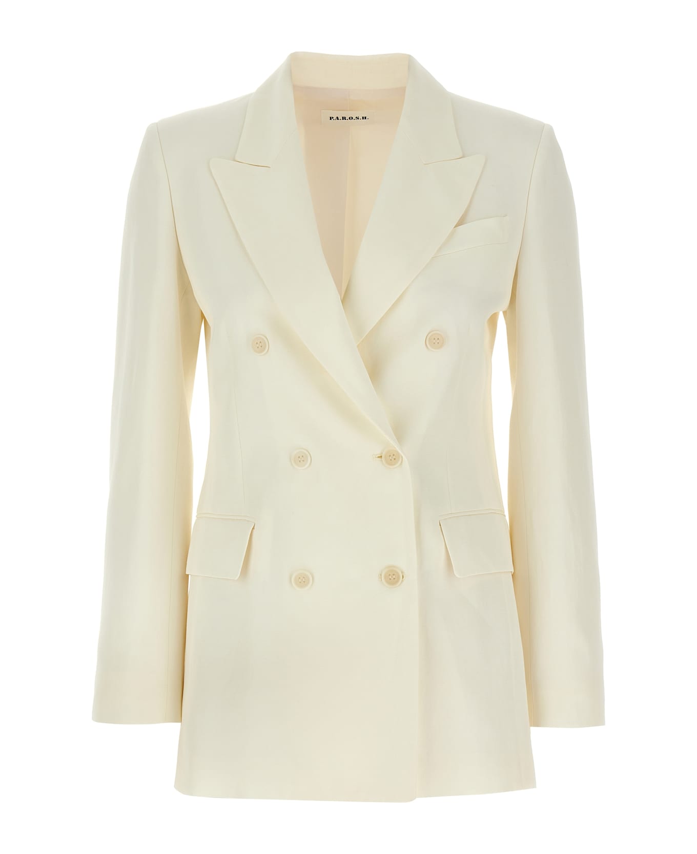Double-breasted 'Raisa' blazer in viscose and linen blend, lining, button closure, peak lapels, long sleeves, padded shoulders, pockets, back vents. Composition: 72% viscose, 28% linen