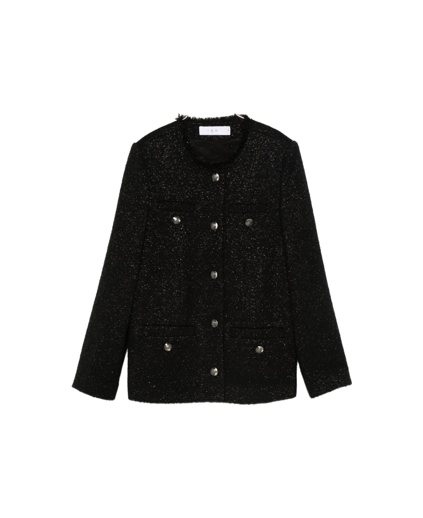black round neck front button fastening long sleeves frayed trim front pockets