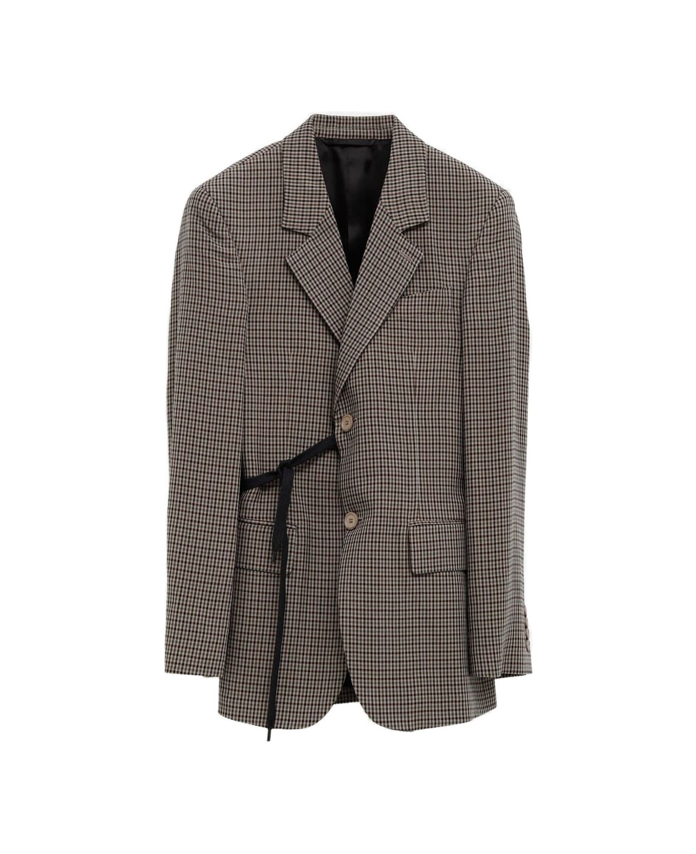 khaki and brown check print tie detail button fastening notched lapels front flap pockets long sleeves Composition: Lyocell, 100%