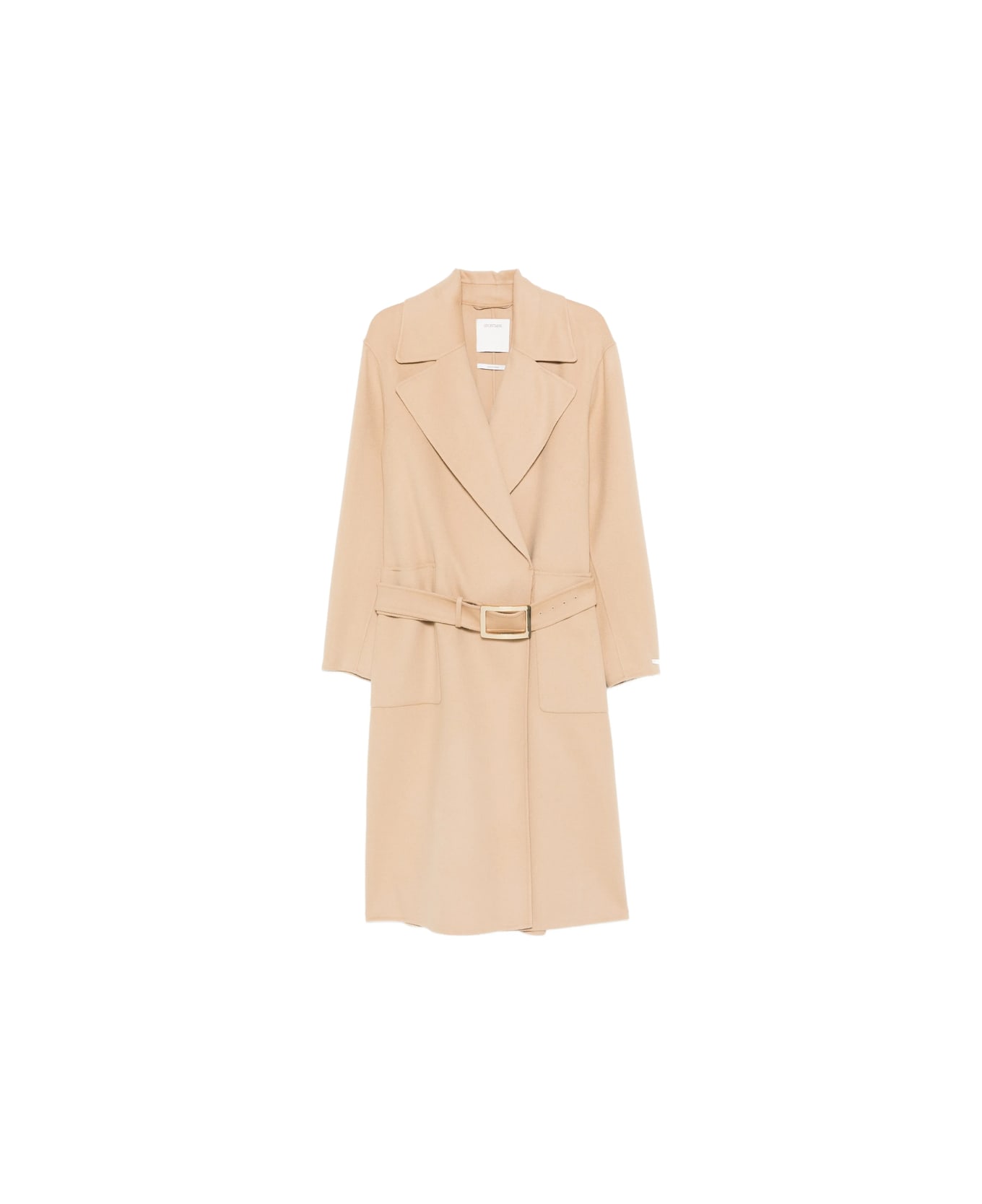light brown notched lapels belt buckle fastening patch pockets long sleeves