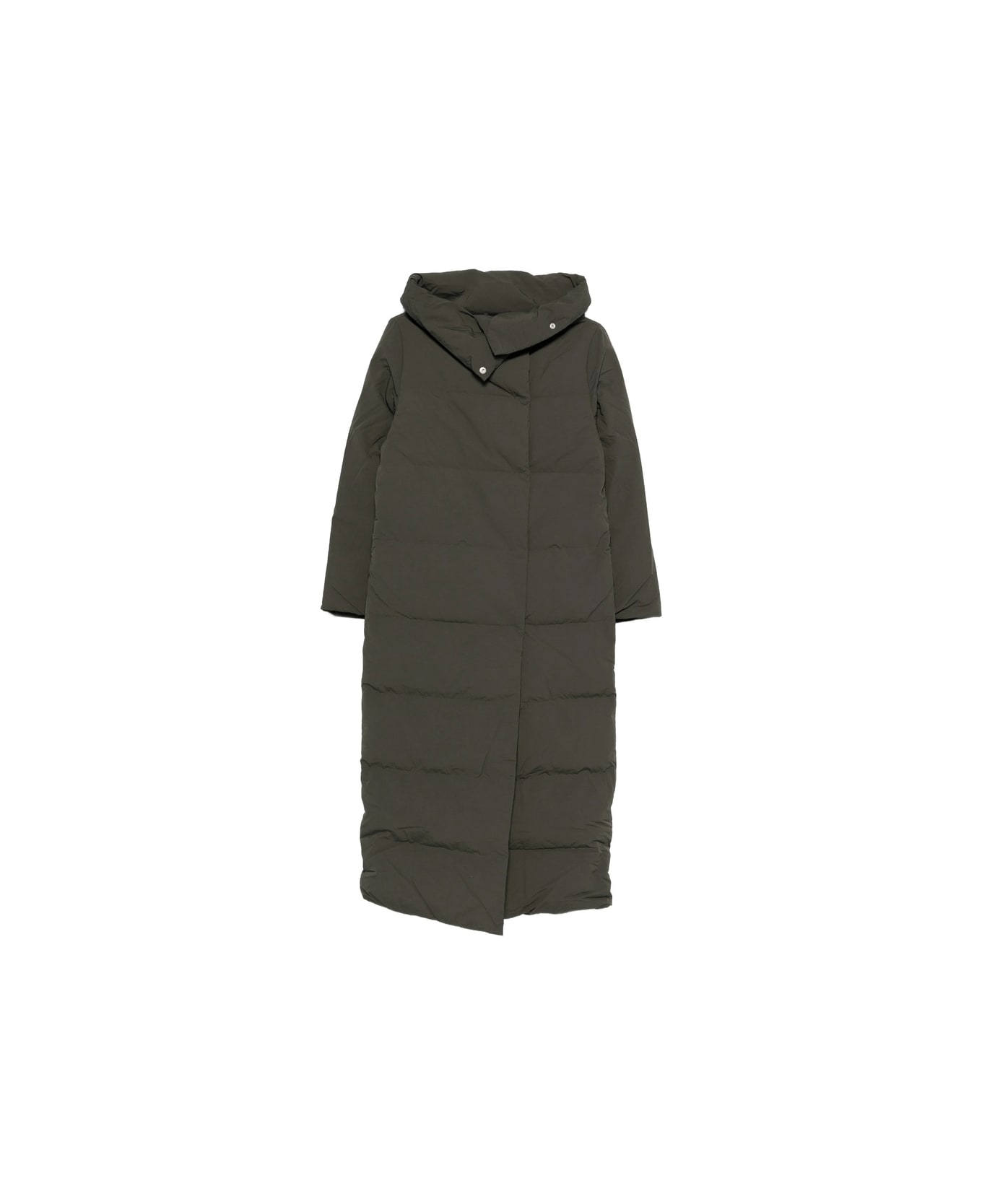 green padded design hood button fastening long sleeves