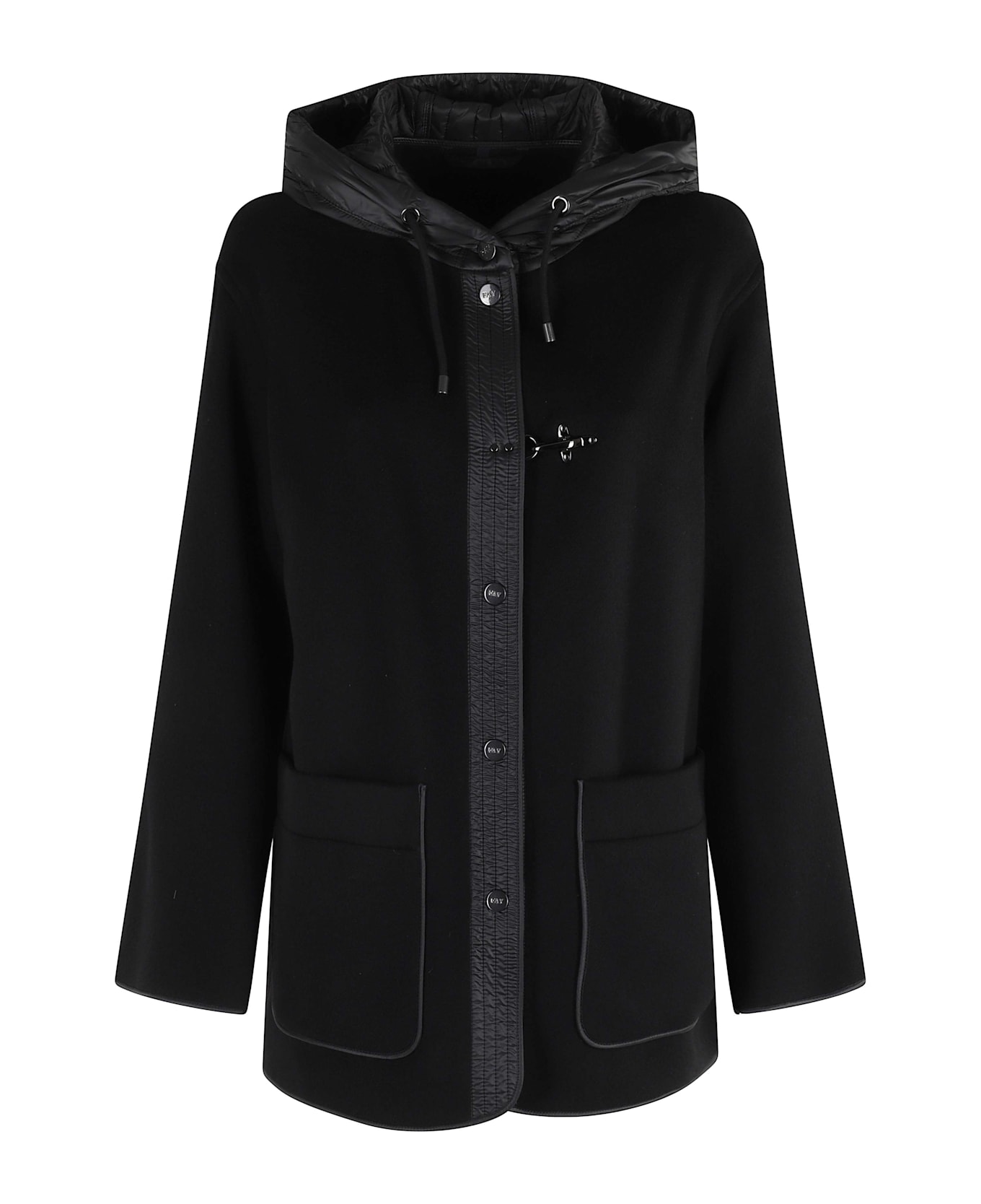 Jacket -Fay -Black color -Cap -Long sleeve -Center button closure -Front pockets