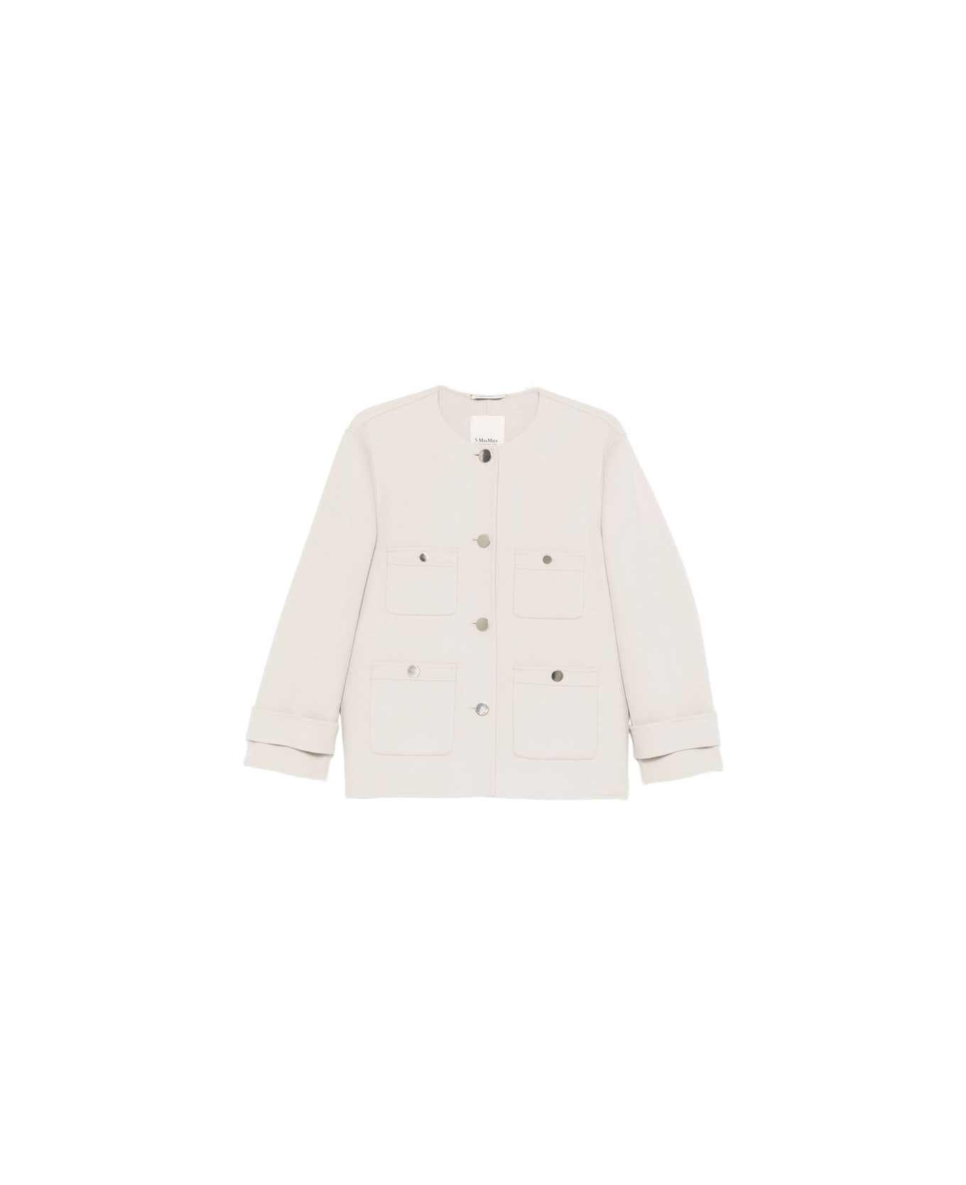light grey round neck front button fastening four front patch pockets