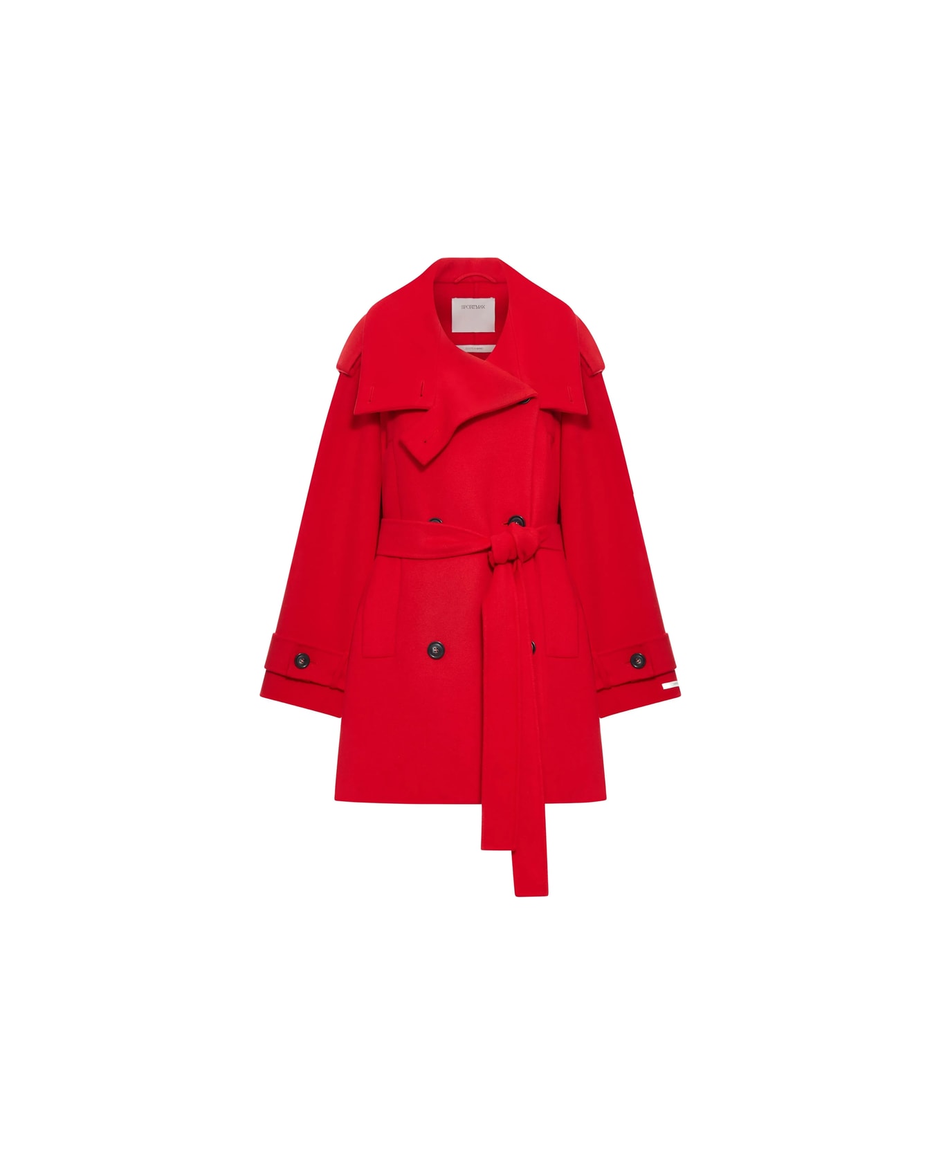 red wool double-breasted button fastening belt wide lapels