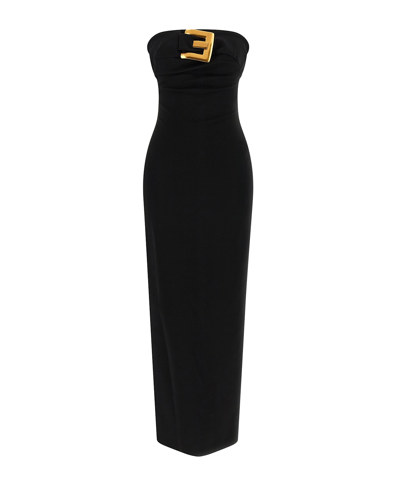 Maxi dress, sheath dress with corsets, belt detail with maxi gold metal buckle, back zip closure, sleeveless.