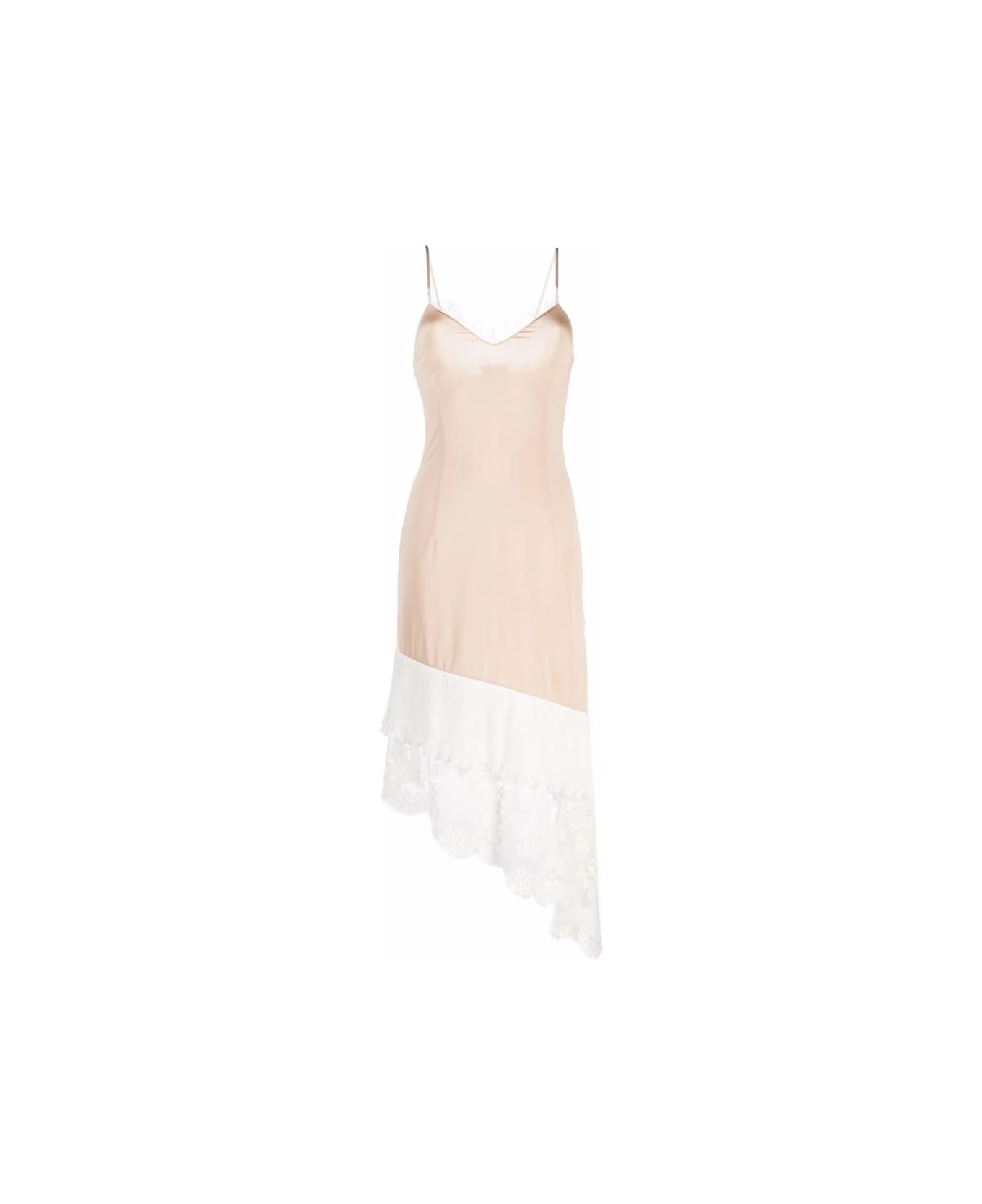 blush/white spaghetti straps sweetheart neck lace panelling asymmetric hem