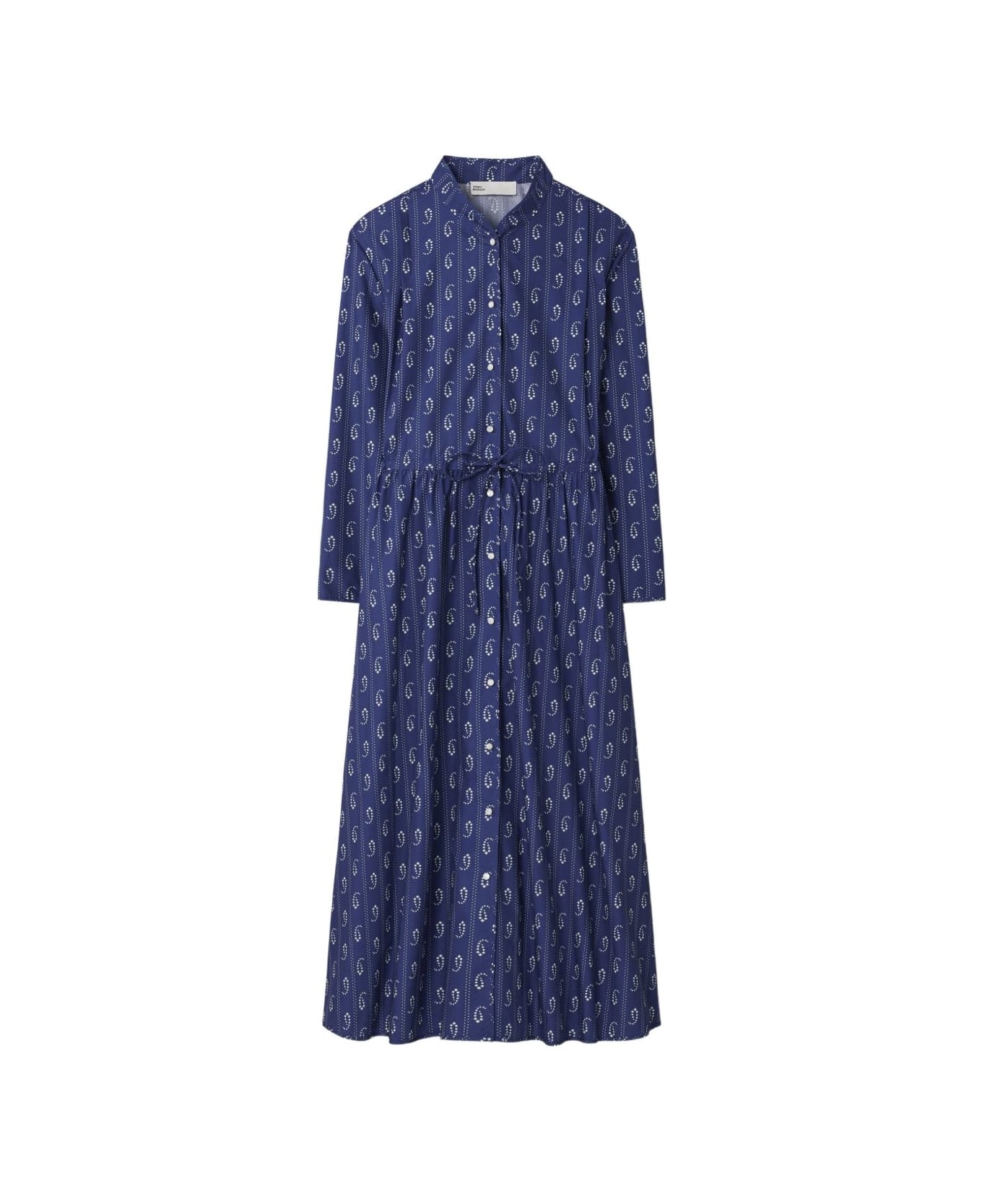 blue all-over print button fastening tie detail long sleeves