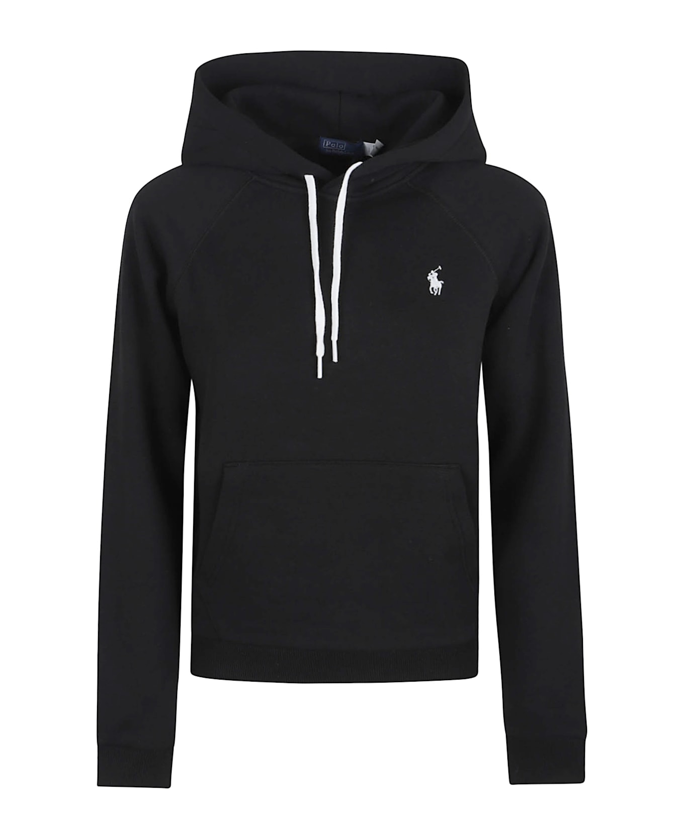 Soft cotton blend sweatshirt by POLO RALPH LAUREN. Drawstring hood; long sleeves; ribbed elastic cuffs and hem; oversized, hip-length design; front patch pocket. Features a contrasting embroidered pony on the left chest.