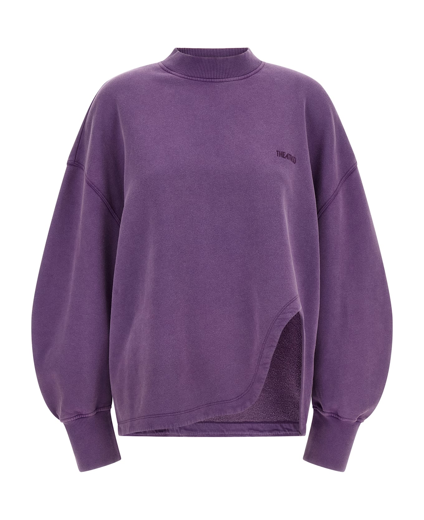 American faded fleece sweatshirt with tone-on-tone logo embroidery on the front, crew neck, long sleeves with cuffs and dropped shoulder, front shaped split, asymmetrical hem. Composition: 100% cotton