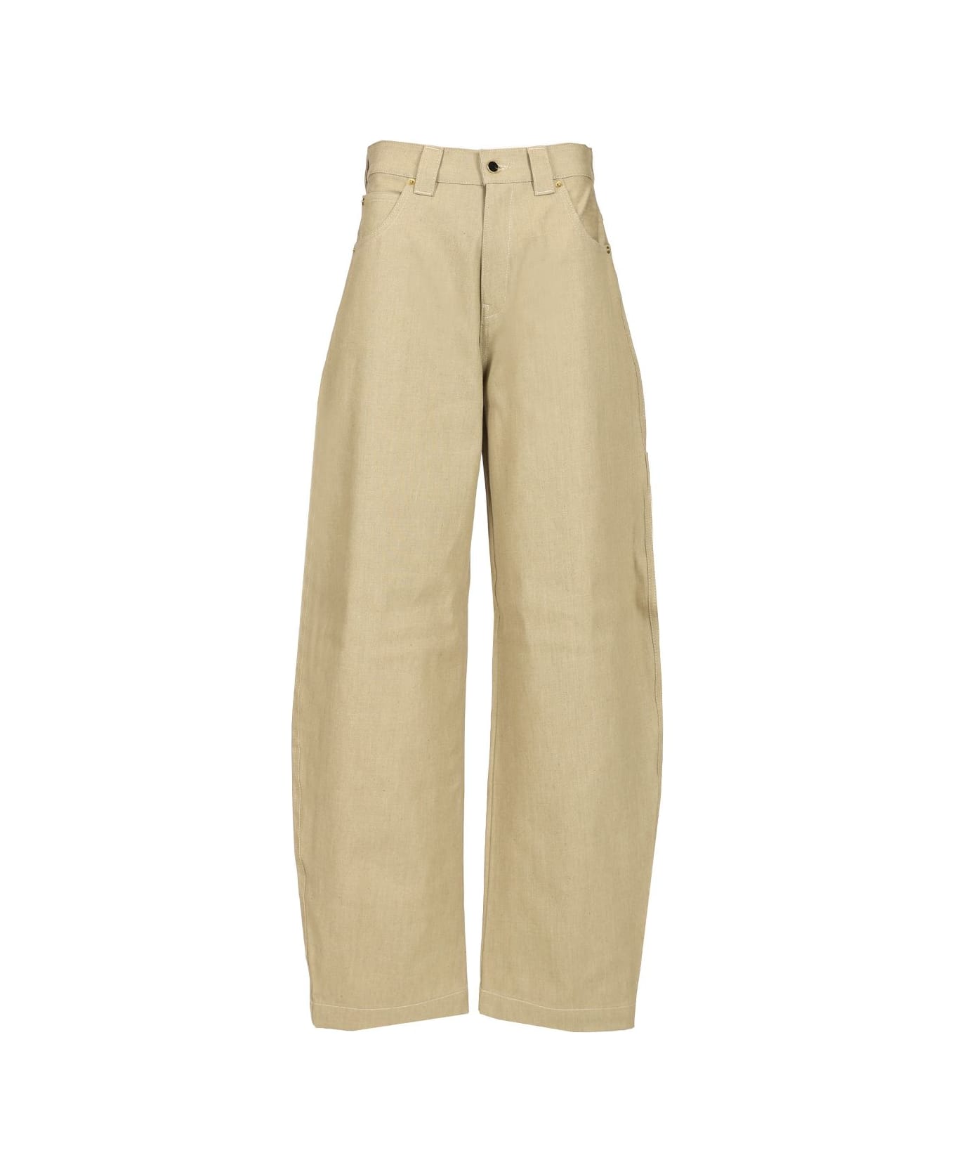 'Audry' barrell jeans from Darkpark in beige cotton canvas with high waist, carpenter details, wide leg that narrows at the bottom.