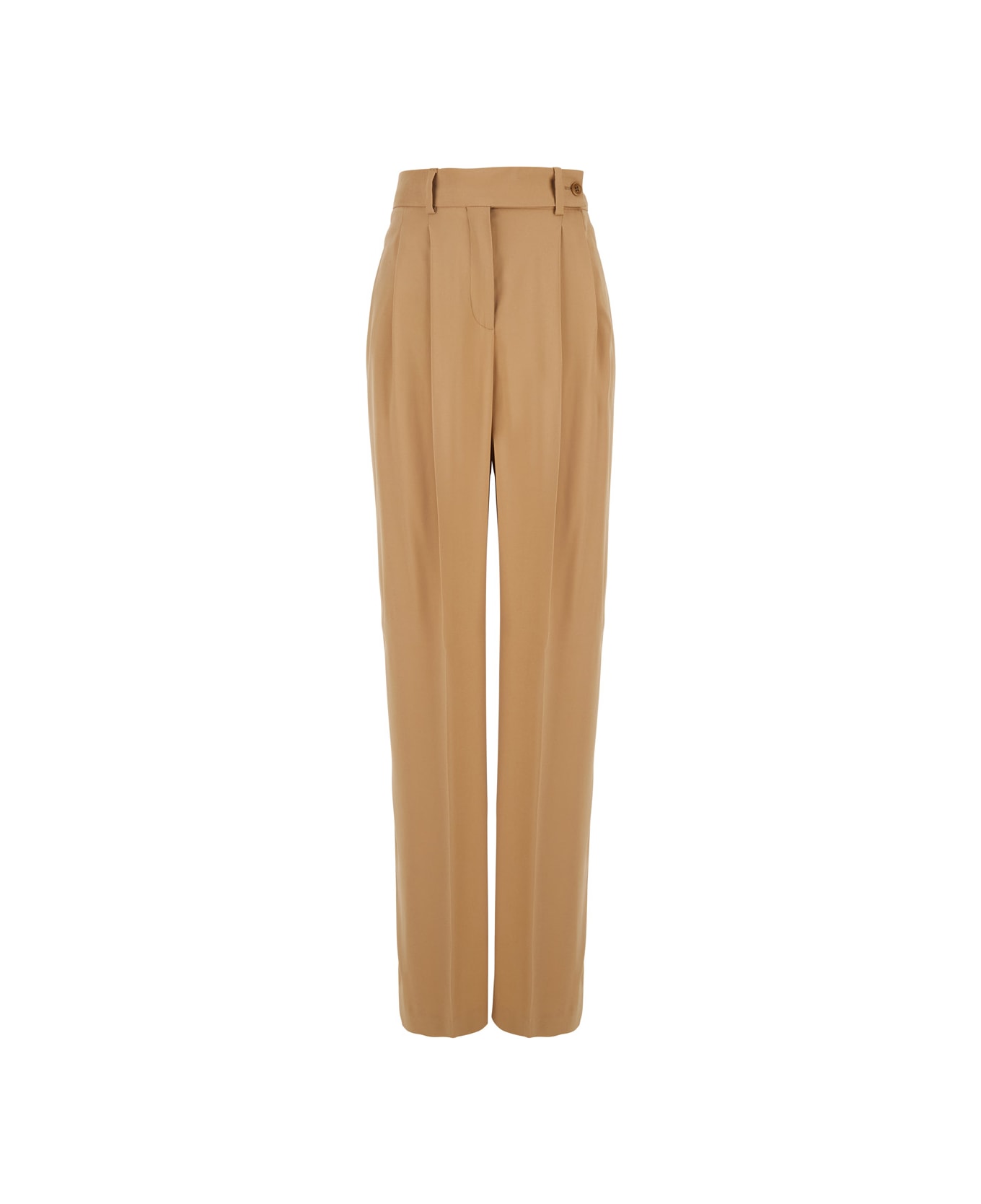 Pants Beige High waist Belt loops Front hook-and-eye and zip closure Two side pockets Two rear welt pockets with button Straight hem Tech fabric stretch Regular fit