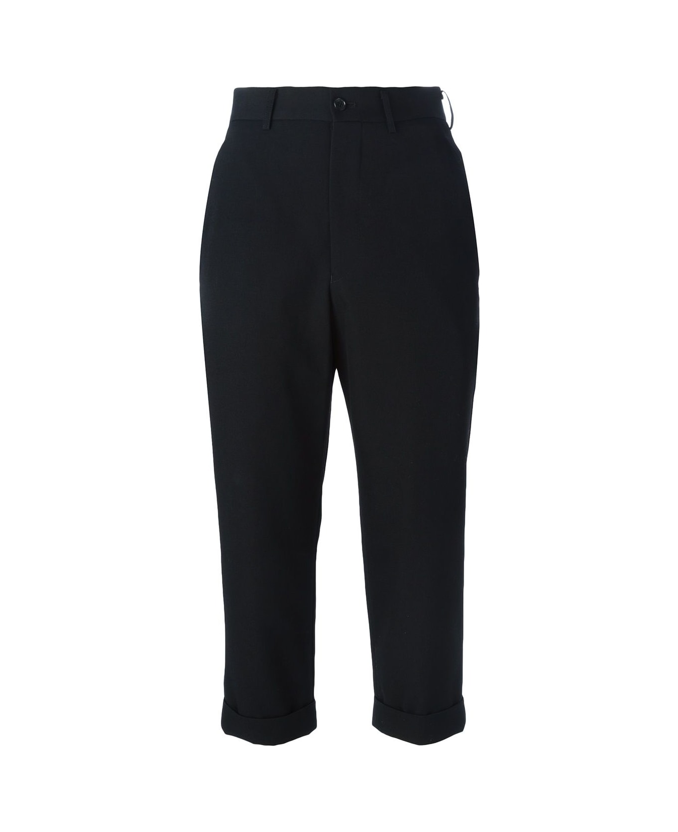 Black wool cropped trousers from Comme Des Garçons Comme Des Garçons. Composition: Wool Or Fine Animal Hair->wool, 100% Synthetic->cupro, 100%