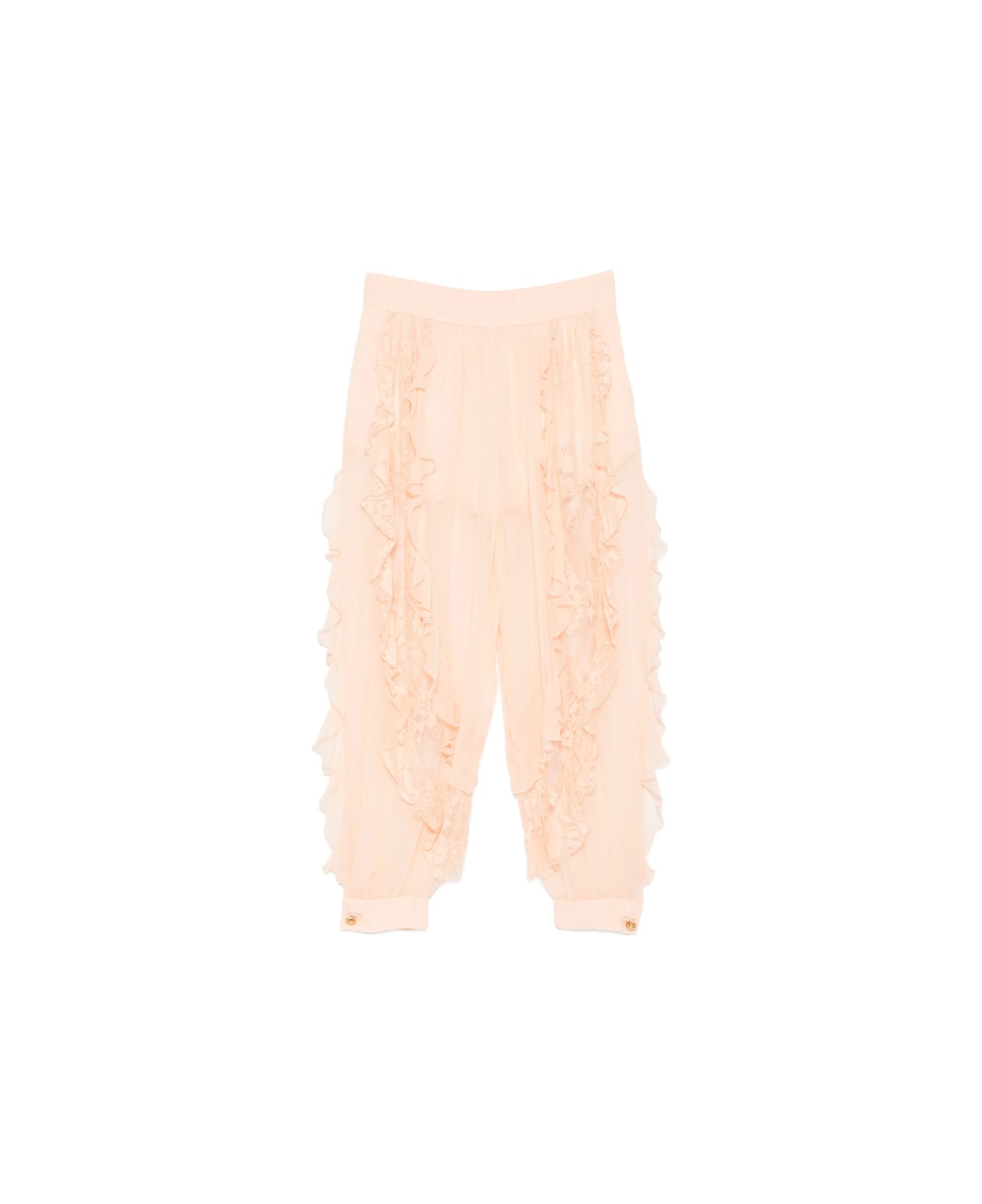 peach lace detail ruffled trim buttoned cuffs sheer finish elasticated waistband