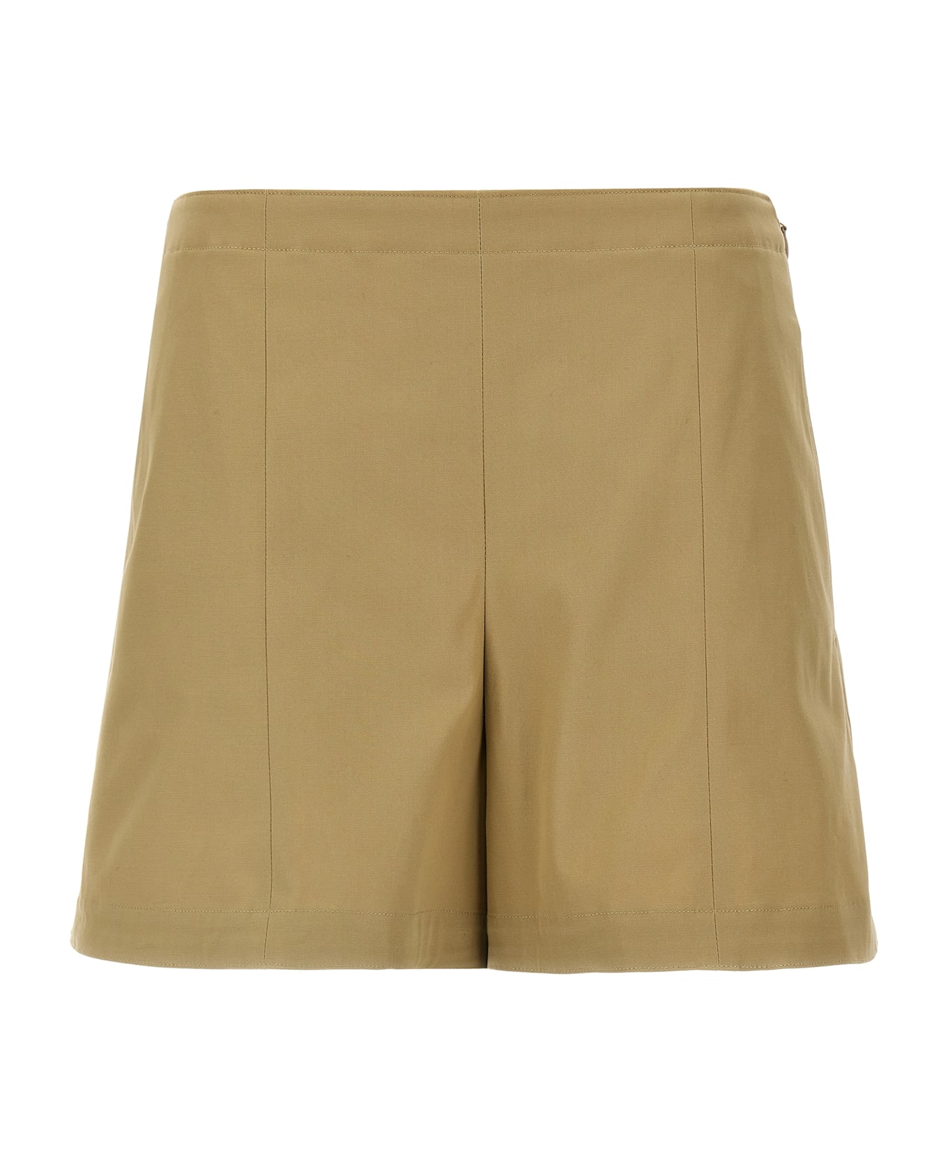 High-waisted cotton shorts, pockets, side zip closure.