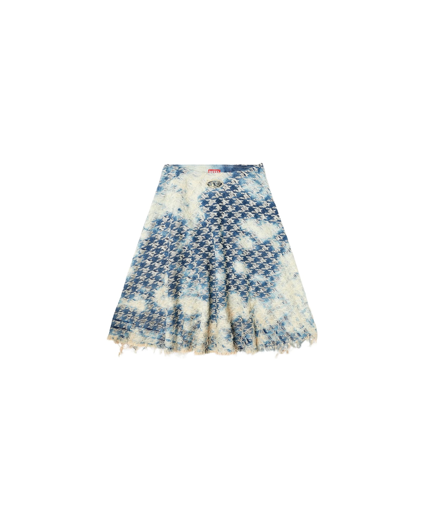 blue houndstooth pattern frayed hem A-line shape cotton material
