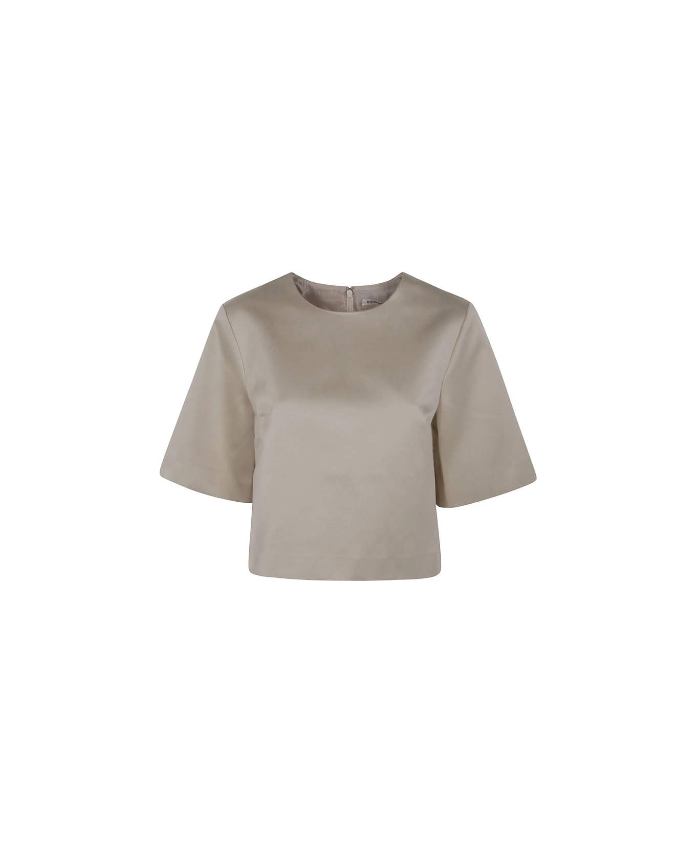 light beige concealed rear zip fastening round neck short sleeves cropped