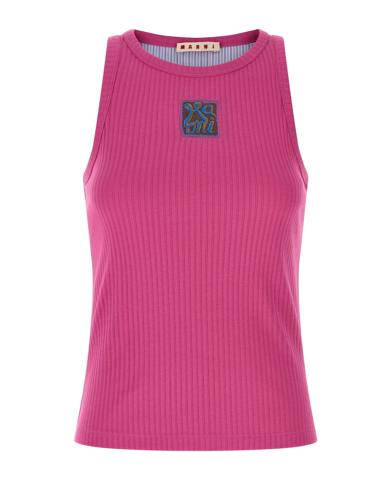 Ribbed stretch cotton tank top with front logo patch, round neckline. Composition: 100% cotton