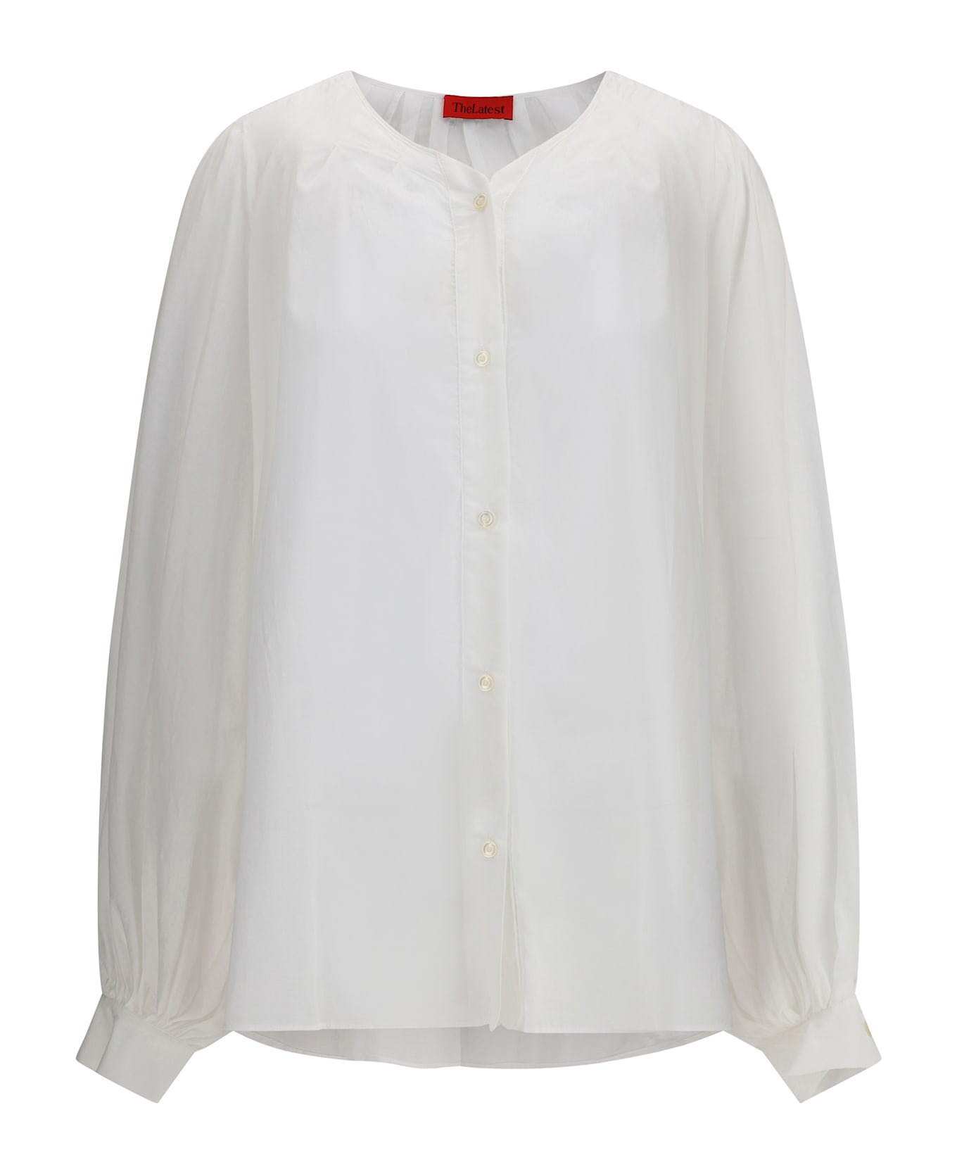 The biro cotton shirt by the latest features a front button closure, adjustable button cuffs and wide balloon sleeves. it features two side welt pockets and an oversized fit that gives a relaxed, modern feel to the design.
