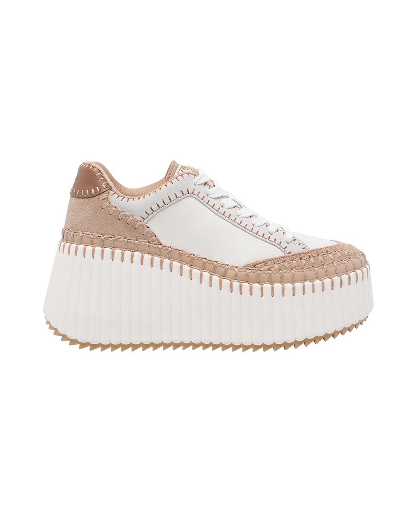 Chloe' beige Nama wedges sneakers, round toe, leather upper, laces closure, platform model