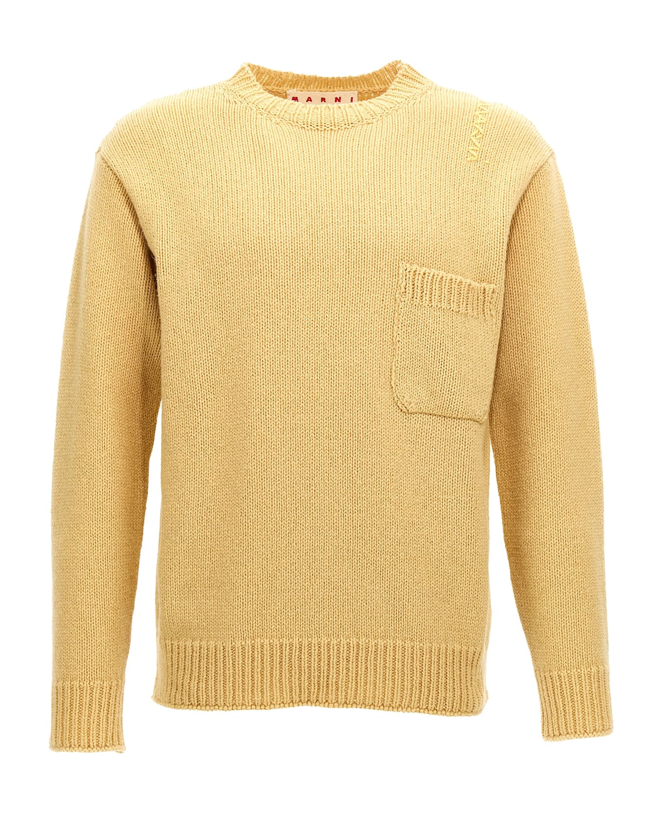 Wool sweater, front pocket, tone-on-tone logo embroidery on the shoulder, crew neck, long cuffed sleeves. Composition: 100% wool
