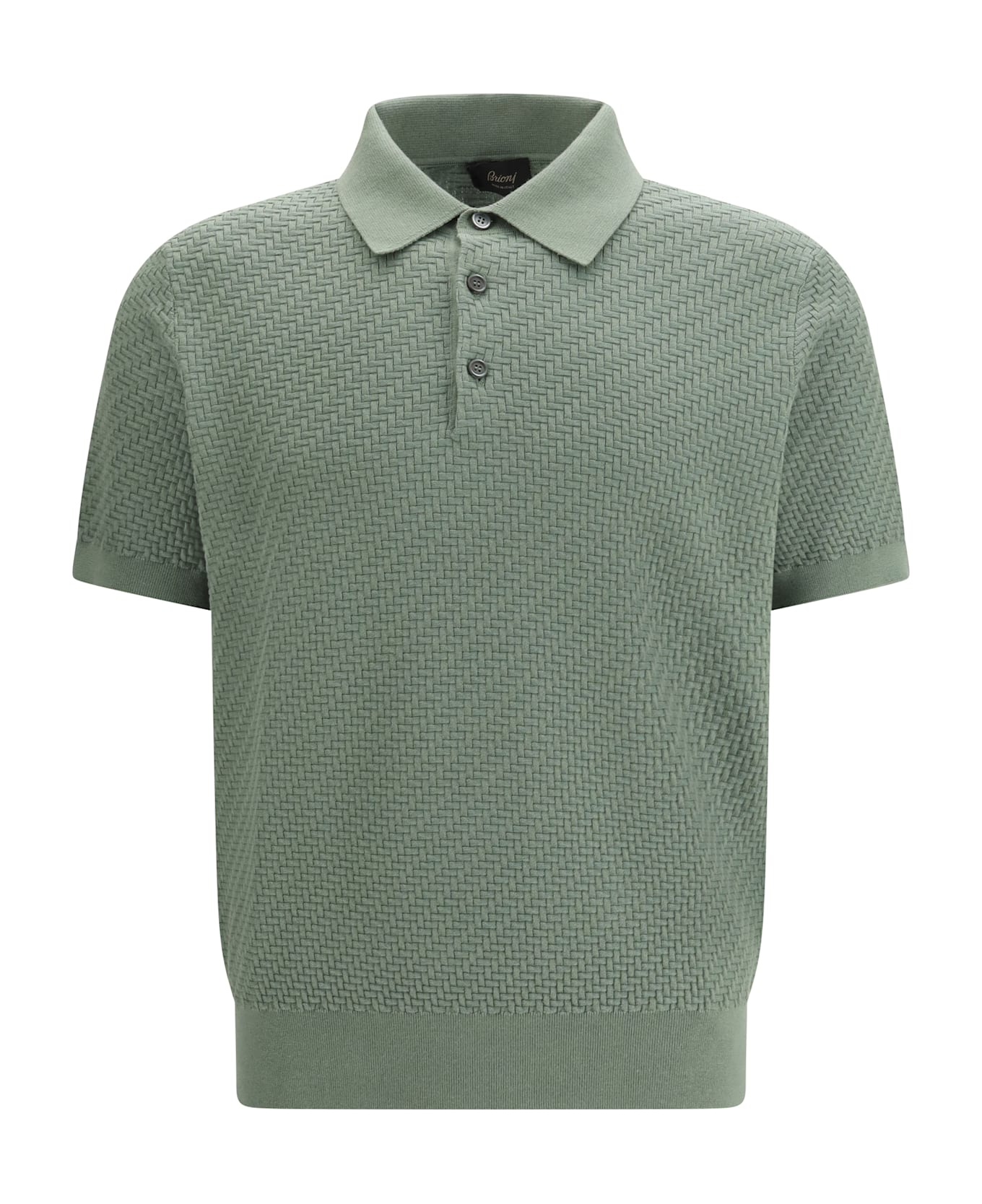 The cotton polo shirt by brioni features a classic collar and tone-on-tone buttons on the front, enhancing its understated elegance. the high ribbed hem and woven weave lend a refined texture, while the monochrome pattern makes for a versatile and sophisticated design. with a regular fit, this polo shirt is perfect for those looking for a garment with an impeccable and comfortable look, suitable for casual and formal occasions.